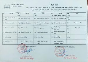 Thực đơn tuần 18 (Thực hiện từ ngày 5/01 đến 09/01/2025)