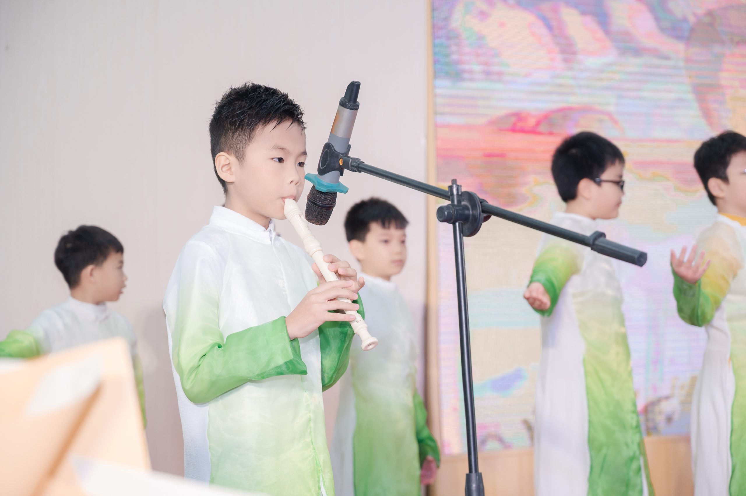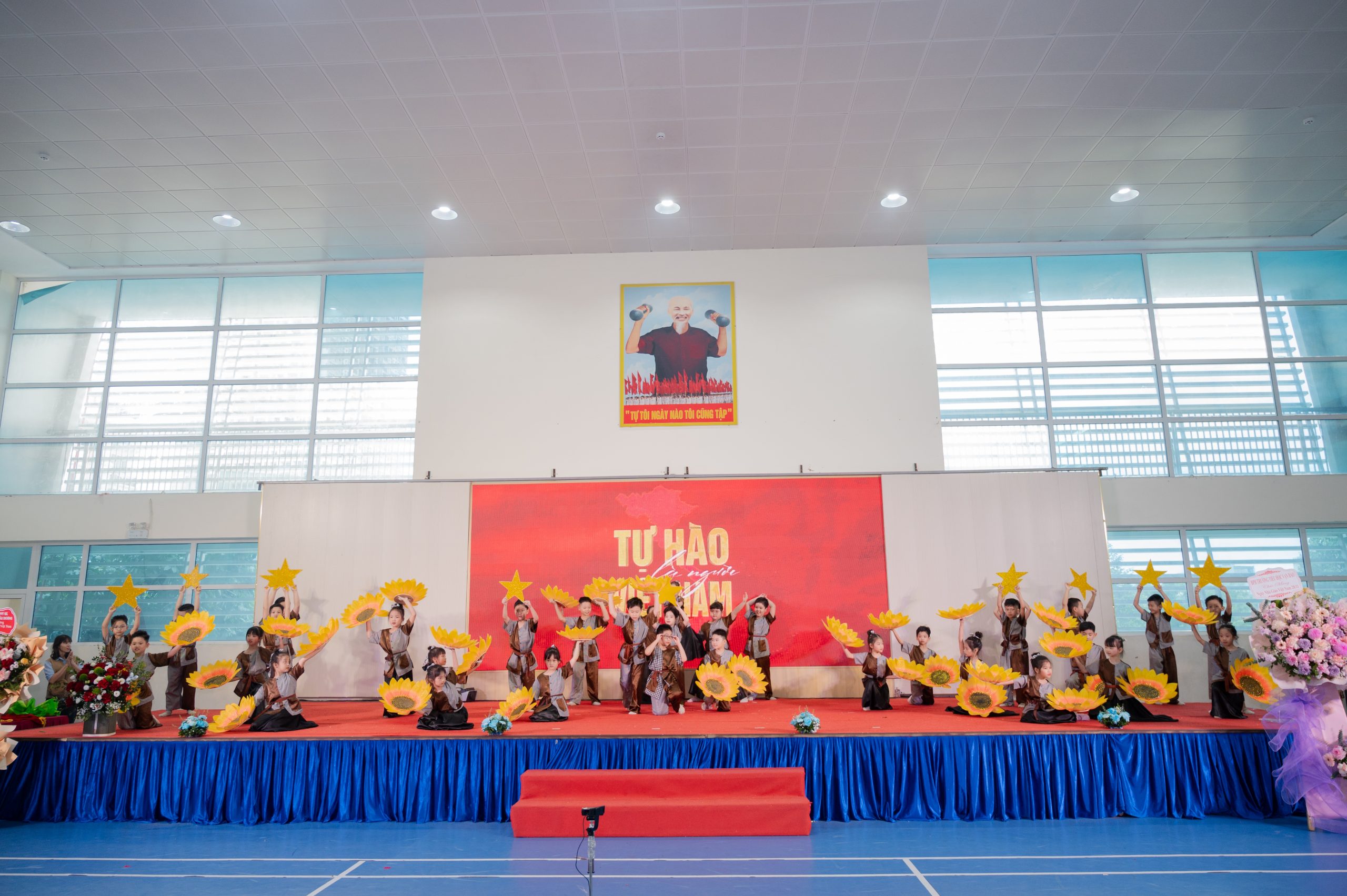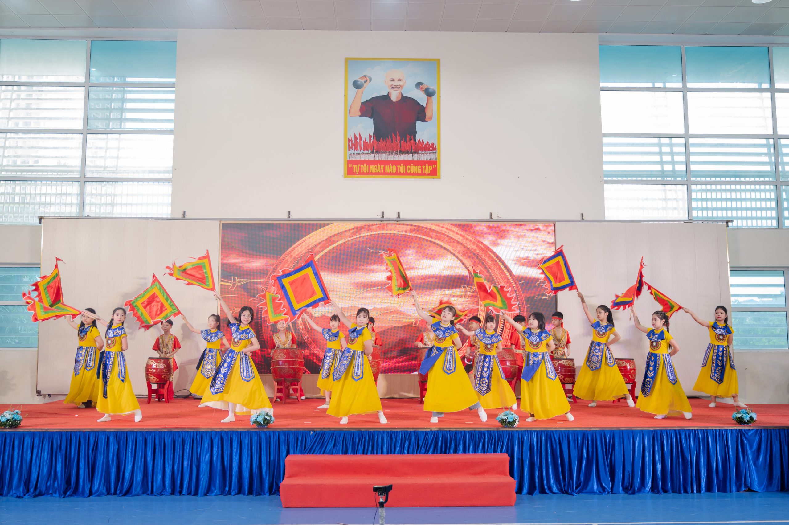 Mở đầu chương trình là nghi thức chào cờ trang nghiêm, thể hiện niềm tự hào và tinh thần đoàn kết của toàn trường. Tiếp đó, các em học sinh đã mang đến những tiết mục văn nghệ tươi vui, ý nghĩa nhằm tri ân các thầy cô giáo.