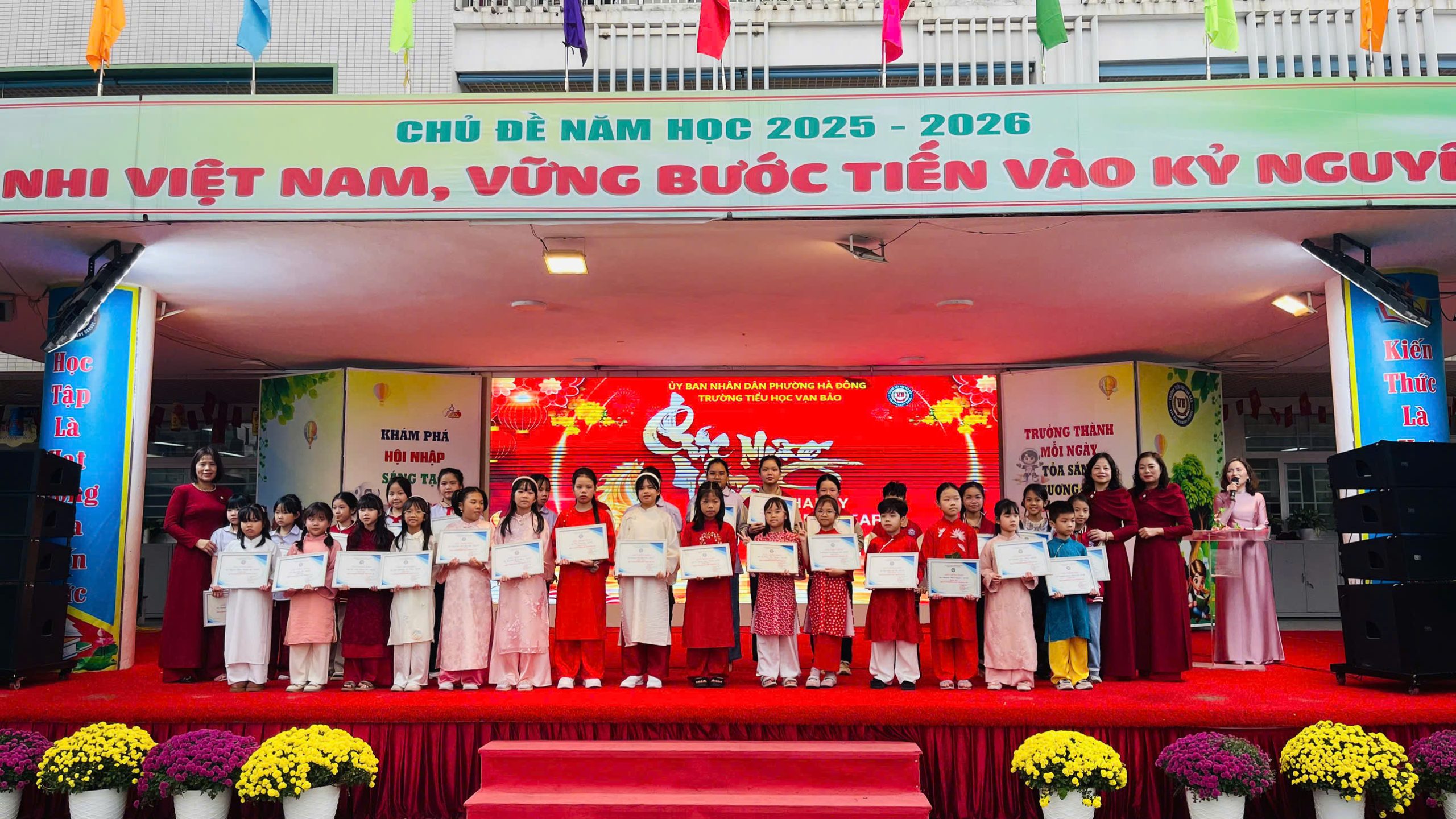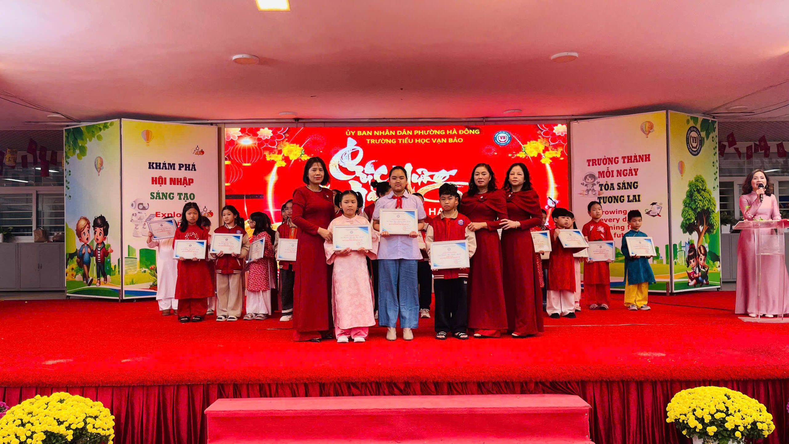 Nhà trường cũng đã trao thưởng cho các em học sinh đạt thành tích cao trong cuộc thi “Vạn Bảo tìm kiếm tài năng”. Đây là sự ghi nhận xứng đáng cho những nỗ lực, sáng tạo và tinh thần dám thể hiện bản thân của các em.