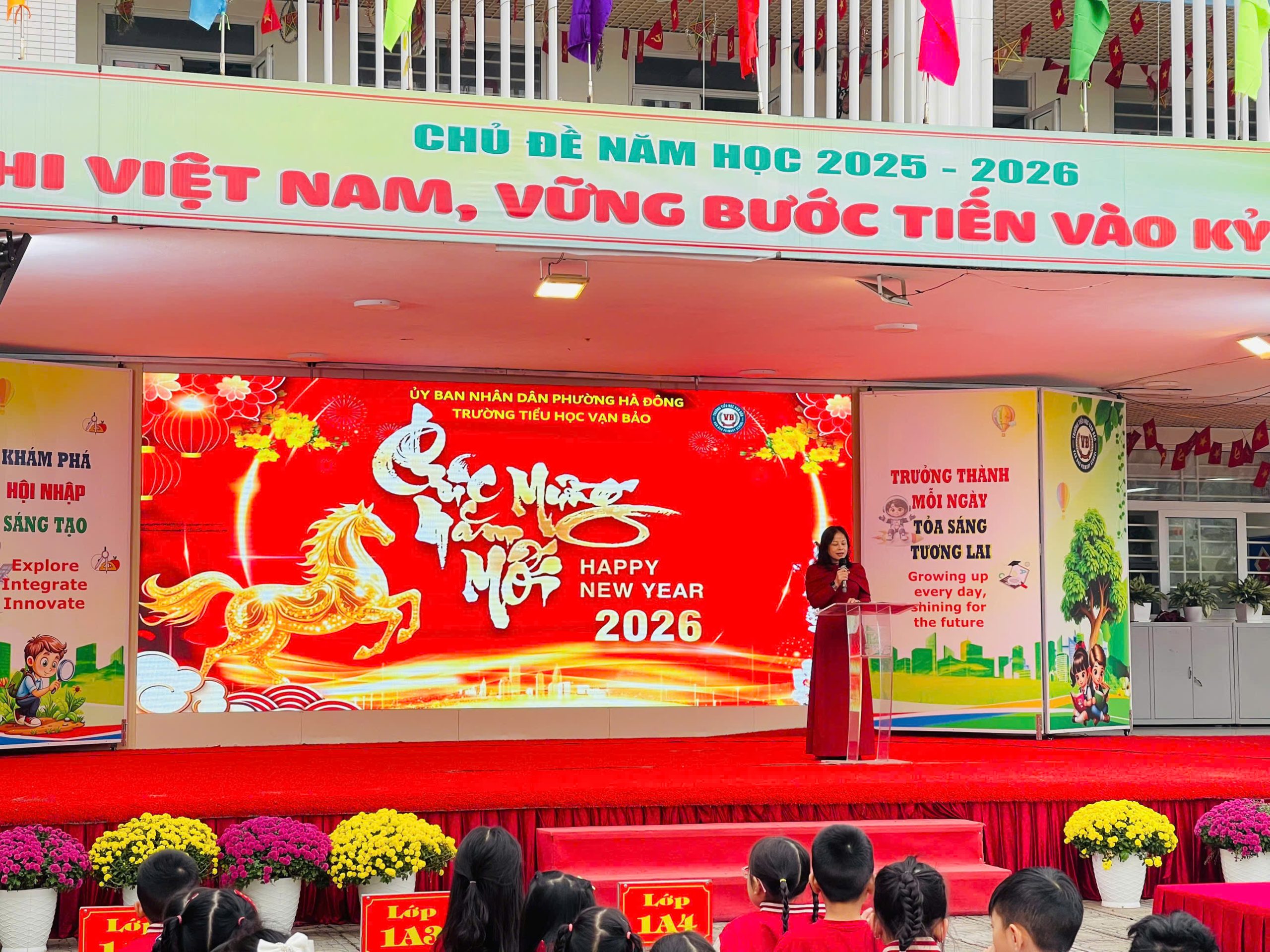 Không khí rộn ràng của mùa xuân đã tràn ngập khắp sân trường trong chương trình chào năm mới đầy sắc màu và tiếng cười của các em học sinh Trường Tiểu học Vạn Bảo. Đây là dịp để thầy và trò cùng nhìn lại những hoạt động ý nghĩa, đồng thời chào đón một năm mới với thật nhiều niềm vui và hy vọng.