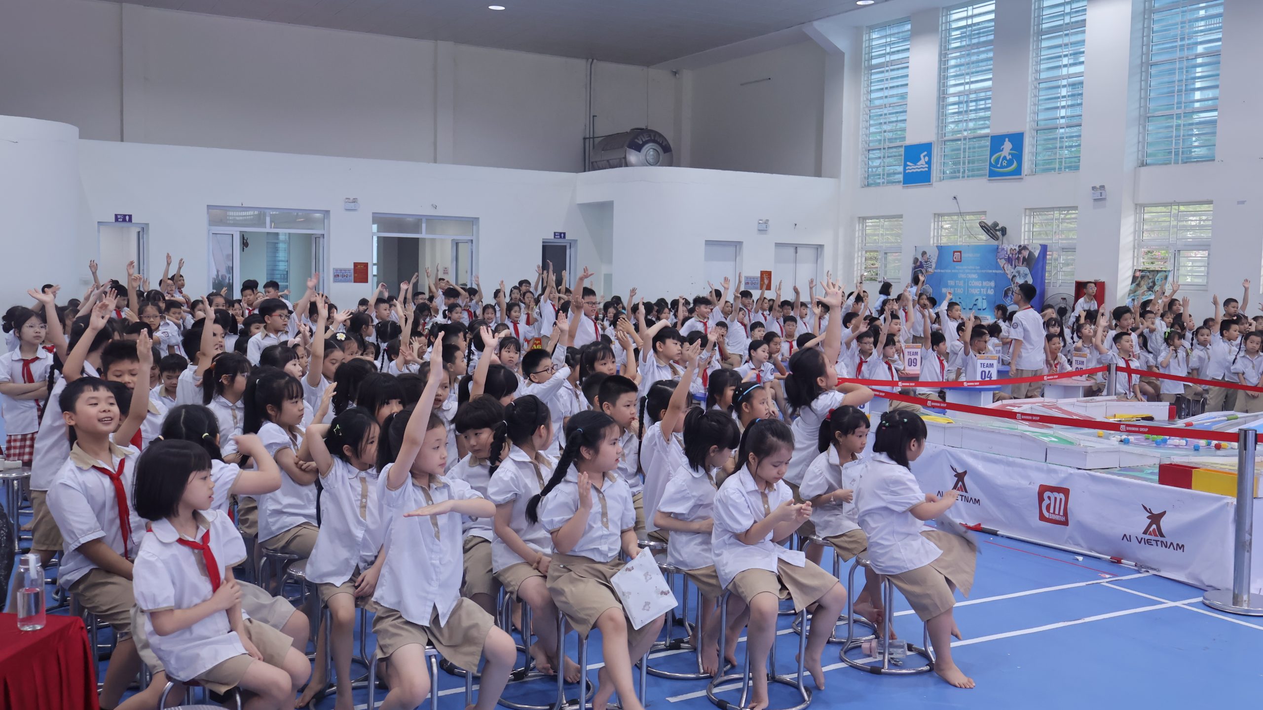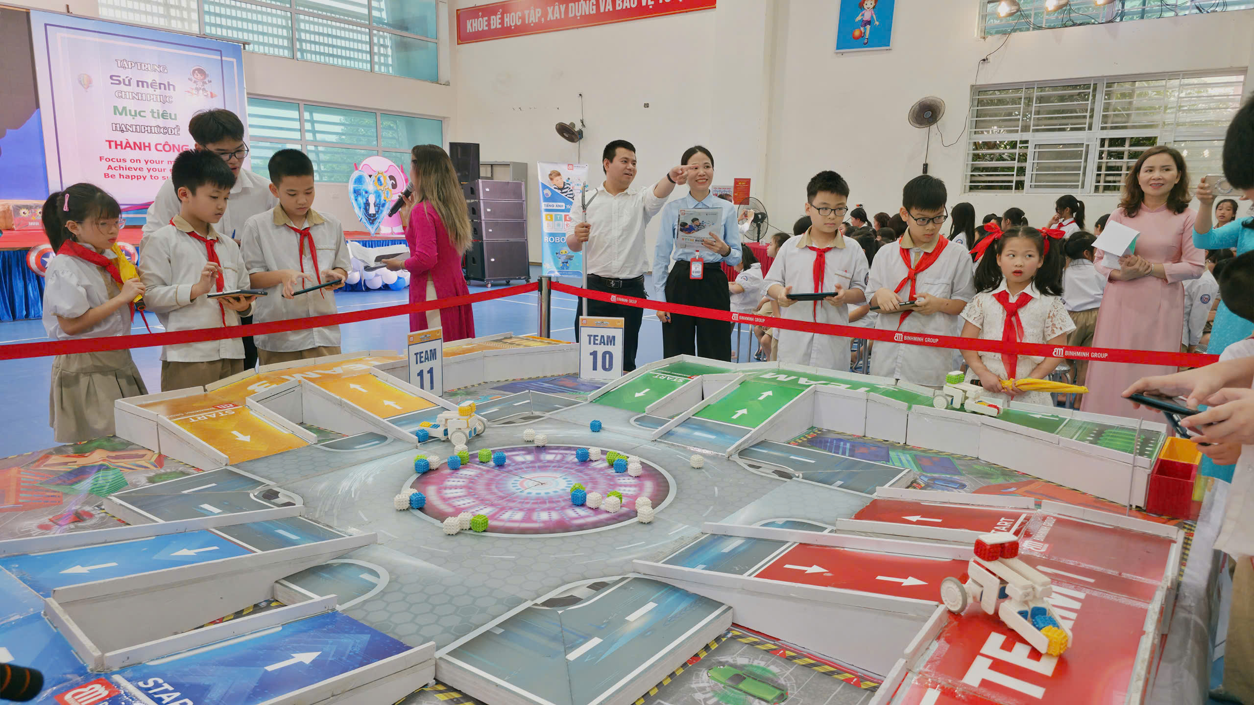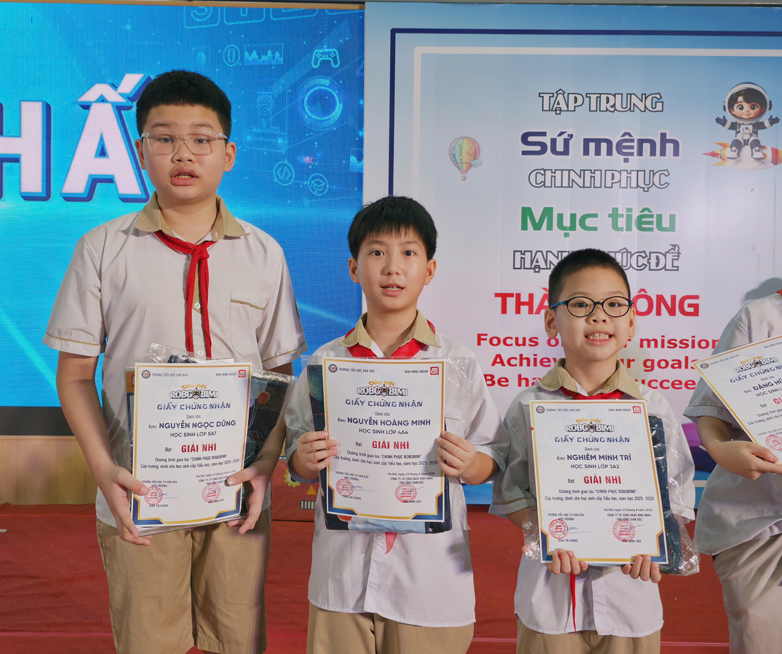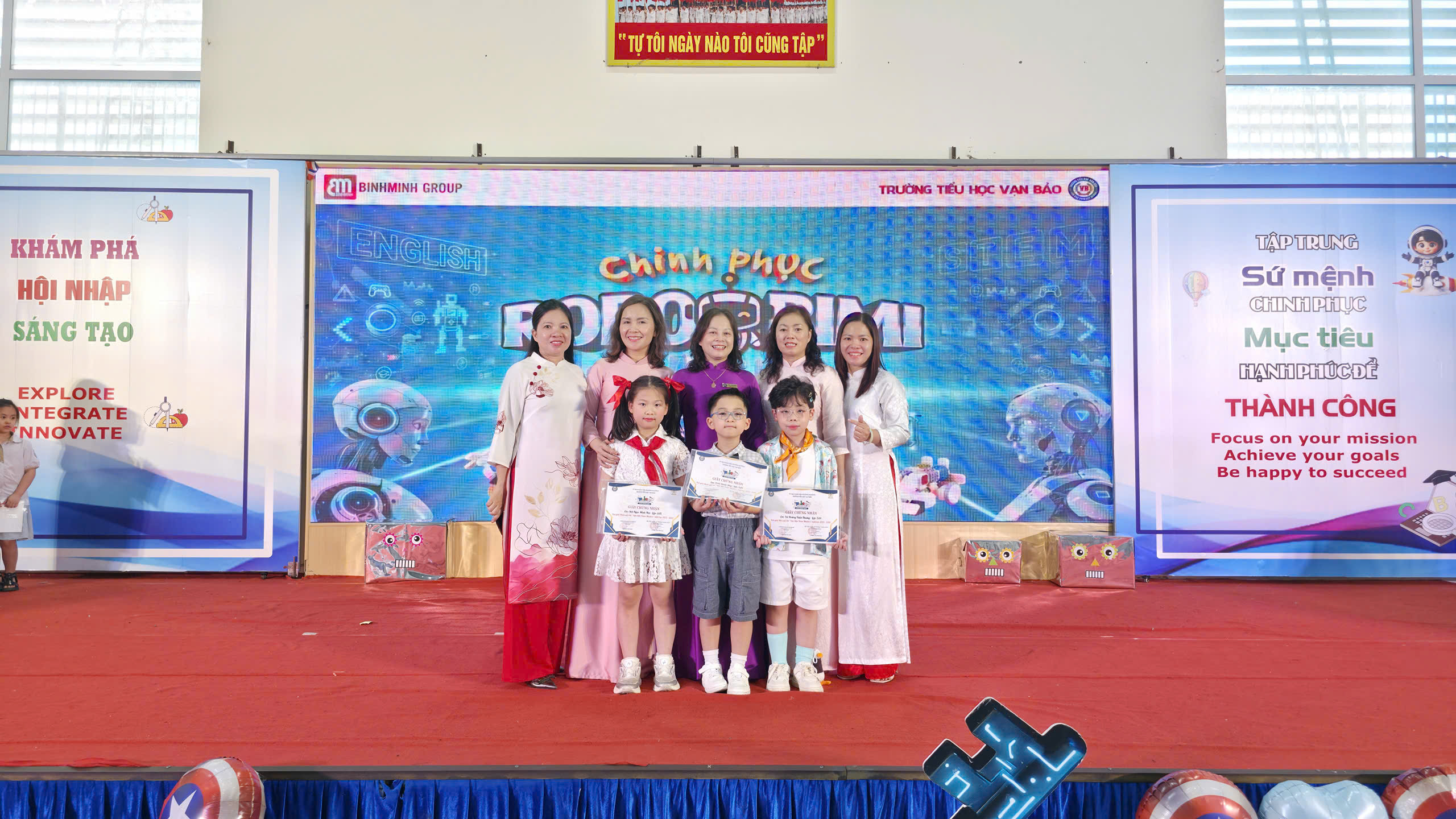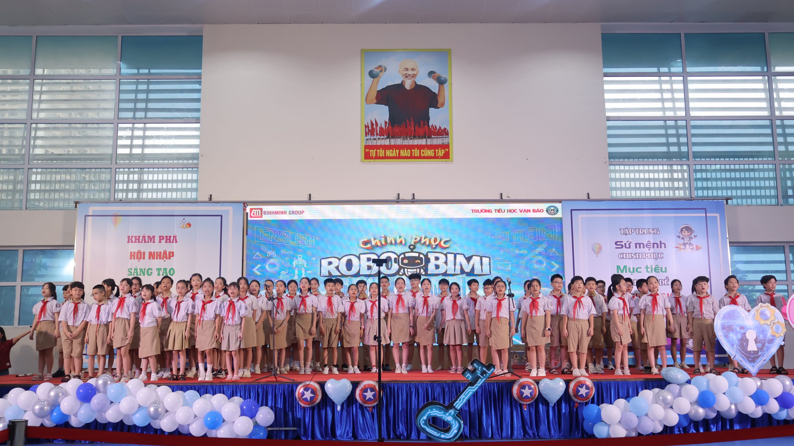 Ngày 23/4/2026, Trường Tiểu học Vạn Bảo phối hợp với Trung tâm Bình Minh tổ chức chương trình “Chinh phục Robobimi” với chủ đề “Shine English – Bright Future”. Chương trình diễn ra trong không khí sôi nổi, hào hứng, thu hút sự tham gia tích cực của các em học sinh.