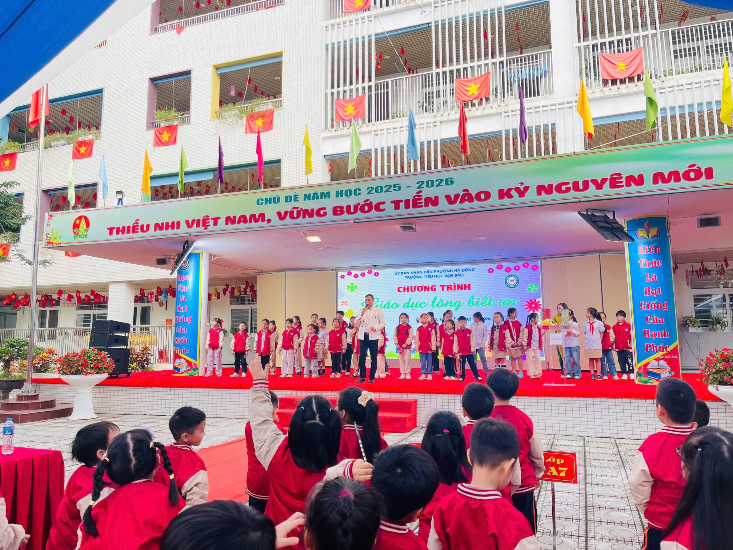 Ngày 5/11/2025, trường Tiểu học Vạn Bảo tổ chức chương trình “Giáo dục lòng biết ơn” nhằm bồi dưỡng cho học sinh tình cảm yêu thương, trân trọng và biết ơn những người xung quanh. Cùng với đó, nhà trường cũng tổ chức hoạt động “Hưởng ứng Ngày Pháp luật nước Cộng hòa xã hội chủ nghĩa Việt Nam”, góp phần nâng cao hiểu biết và ý thức chấp hành pháp luật trong học sinh.