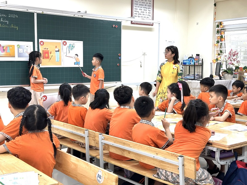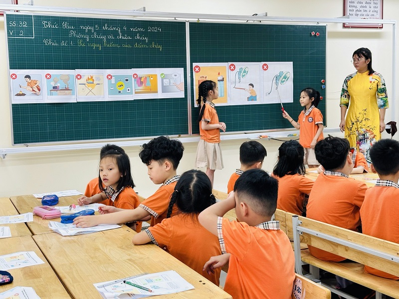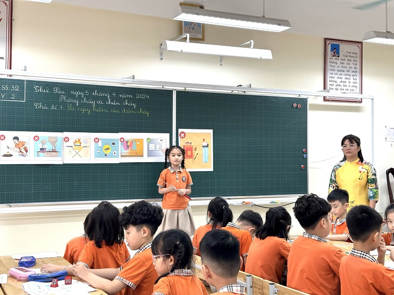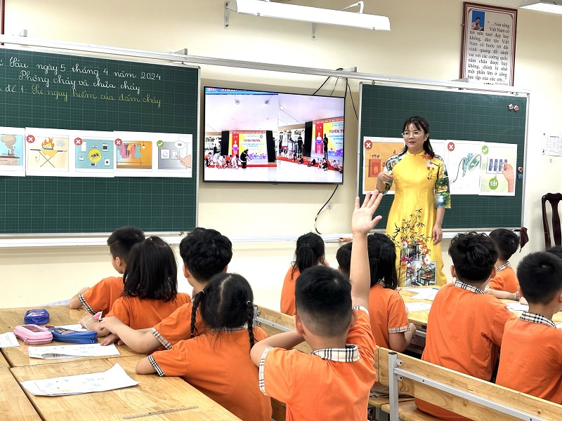 Lồng ghép kiến thức và kỹ năng về phòng cháy, chữa cháy (PCCC), cứu nạn, cứu hộ (CNCH) vào chương trình giảng dạy để giáo dục kiến thức, kỹ năng về PCCC và CNCH trong cuộc sống cho các em học sinh. Dưới đây là một số hình ảnh của cô trò lớp 2A6 trường Tiểu học Vạn Bảo trong tiết học với chủ đề “Sự nguy hiểm của đám cháy”.