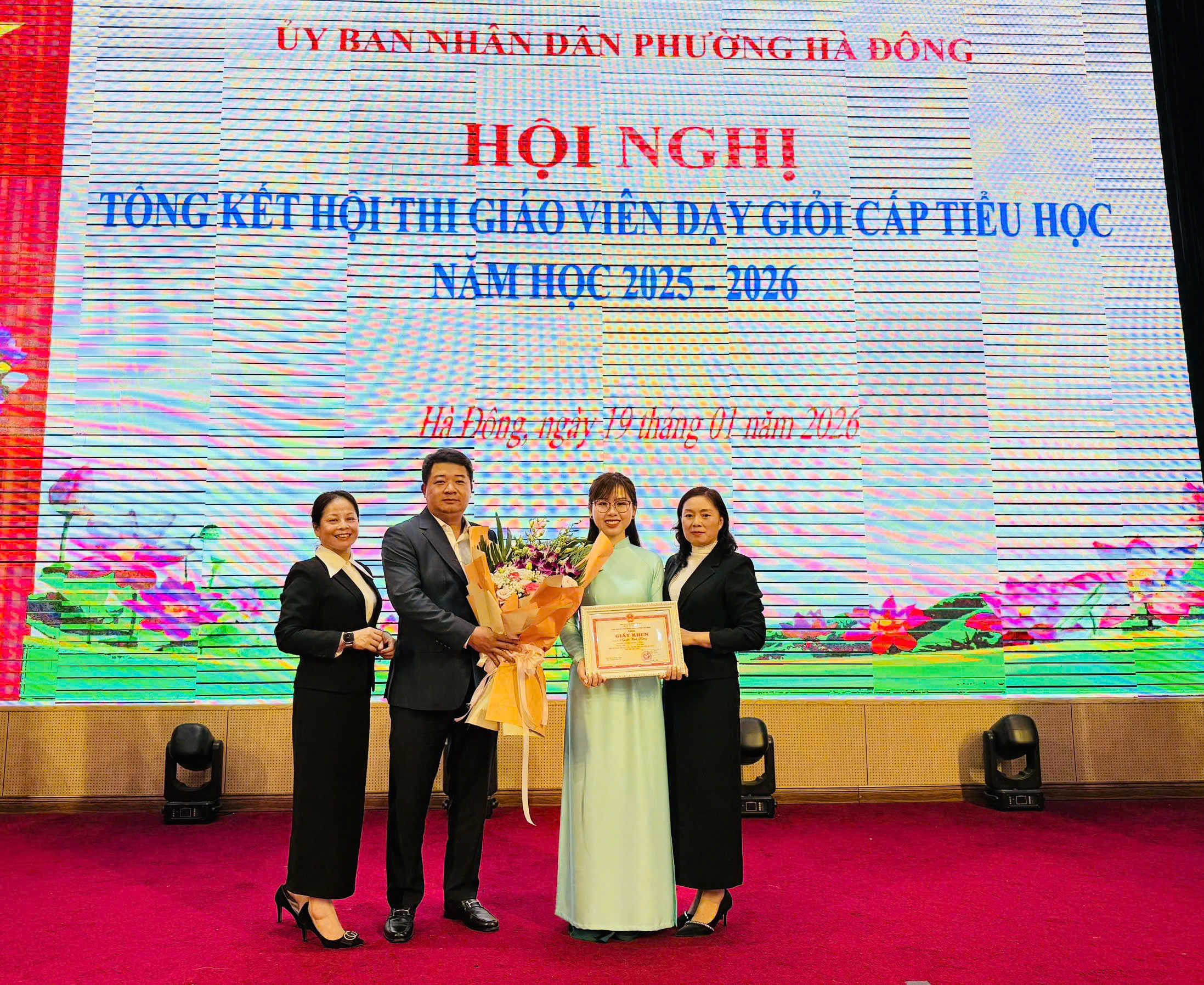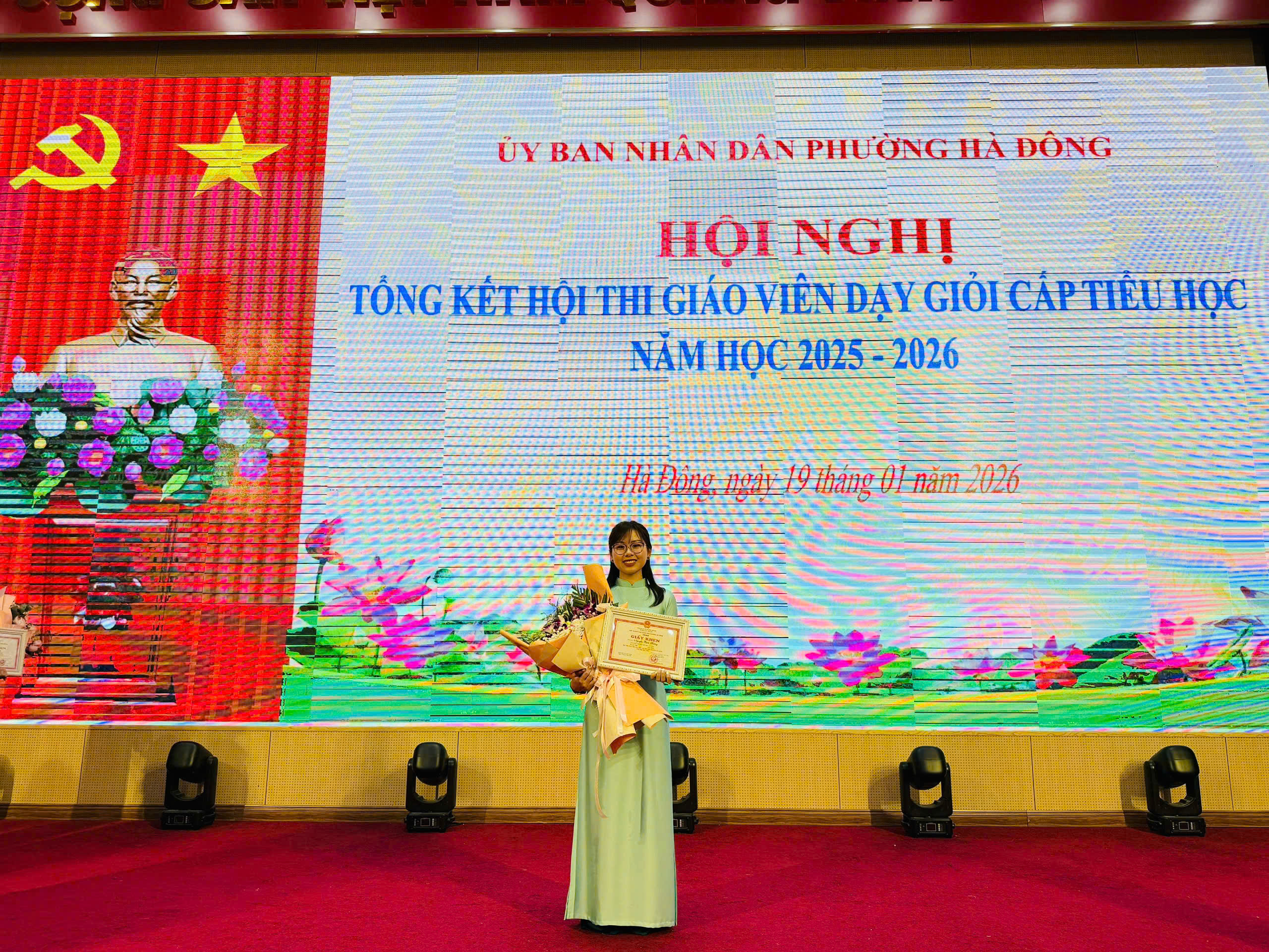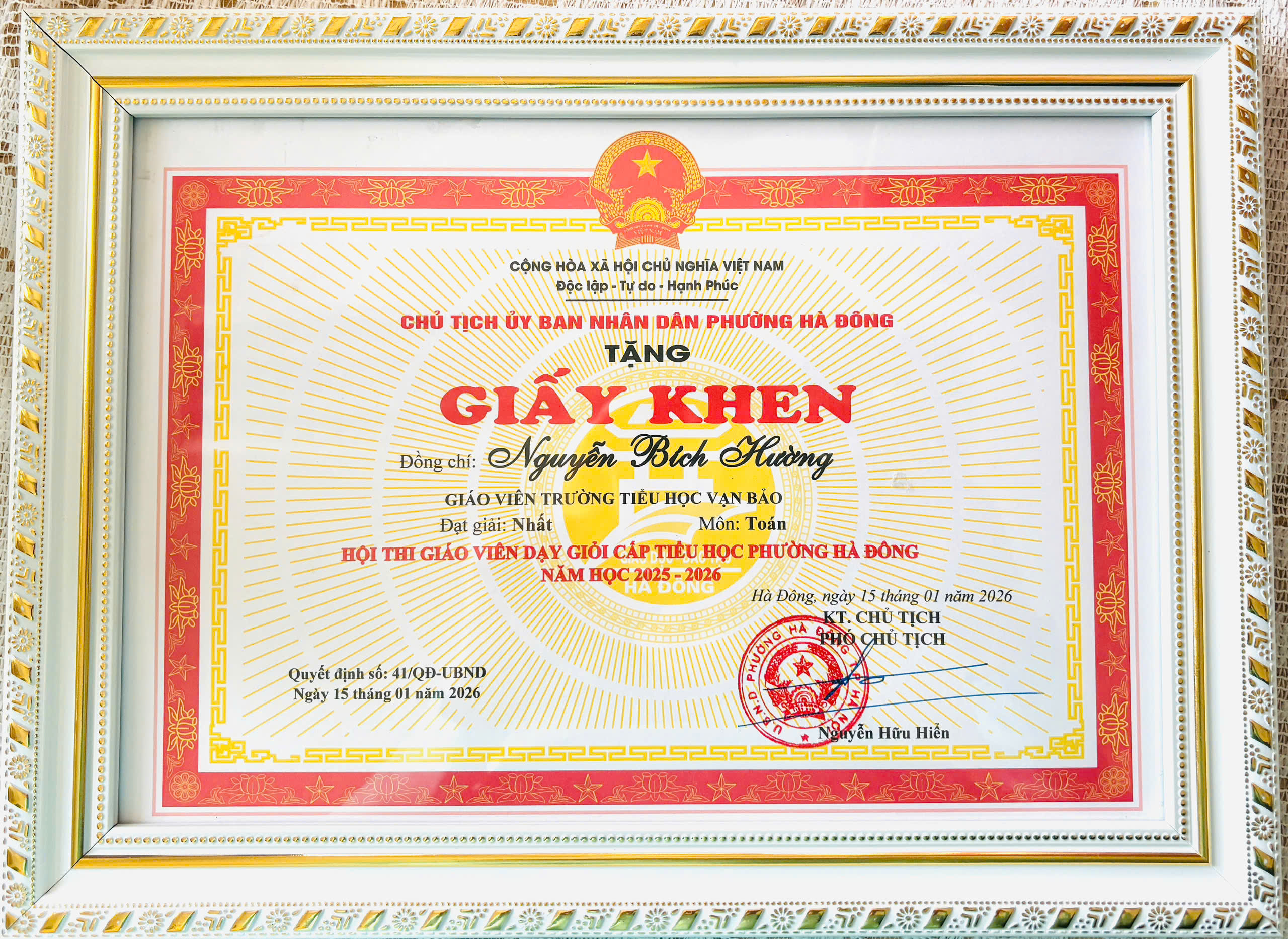 Kết quả, cô giáo Nguyễn Bích Hường đã xuất sắc đạt Giải Nhất tại Hội thi Giáo viên giỏi phường Hà Đông. Đây là thành tích đáng tự hào, ghi nhận những nỗ lực không ngừng của cô, đồng thời góp phần nâng cao uy tín và chất lượng giáo dục của Trường Tiểu học Vạn Bảo.