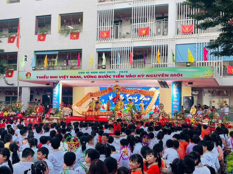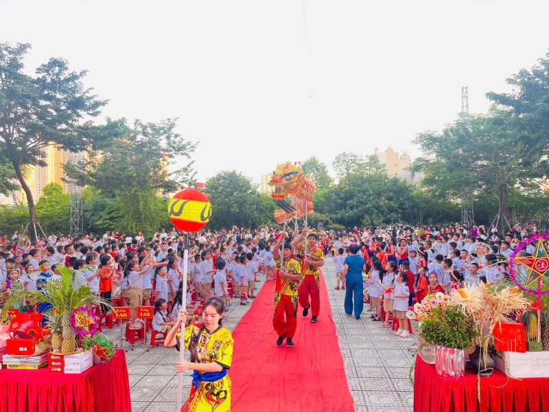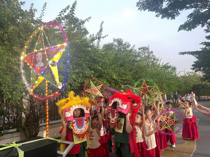 Và khoảng khắc đẹp nhất – hàng trăm chiếc đèn ông sao cùng giơ cao, nối nhau rước đèn quanh sân trường trong tiếng trống lân rộn ràng, biến đêm hội thành ký ức khó quên của tuổi thơ.