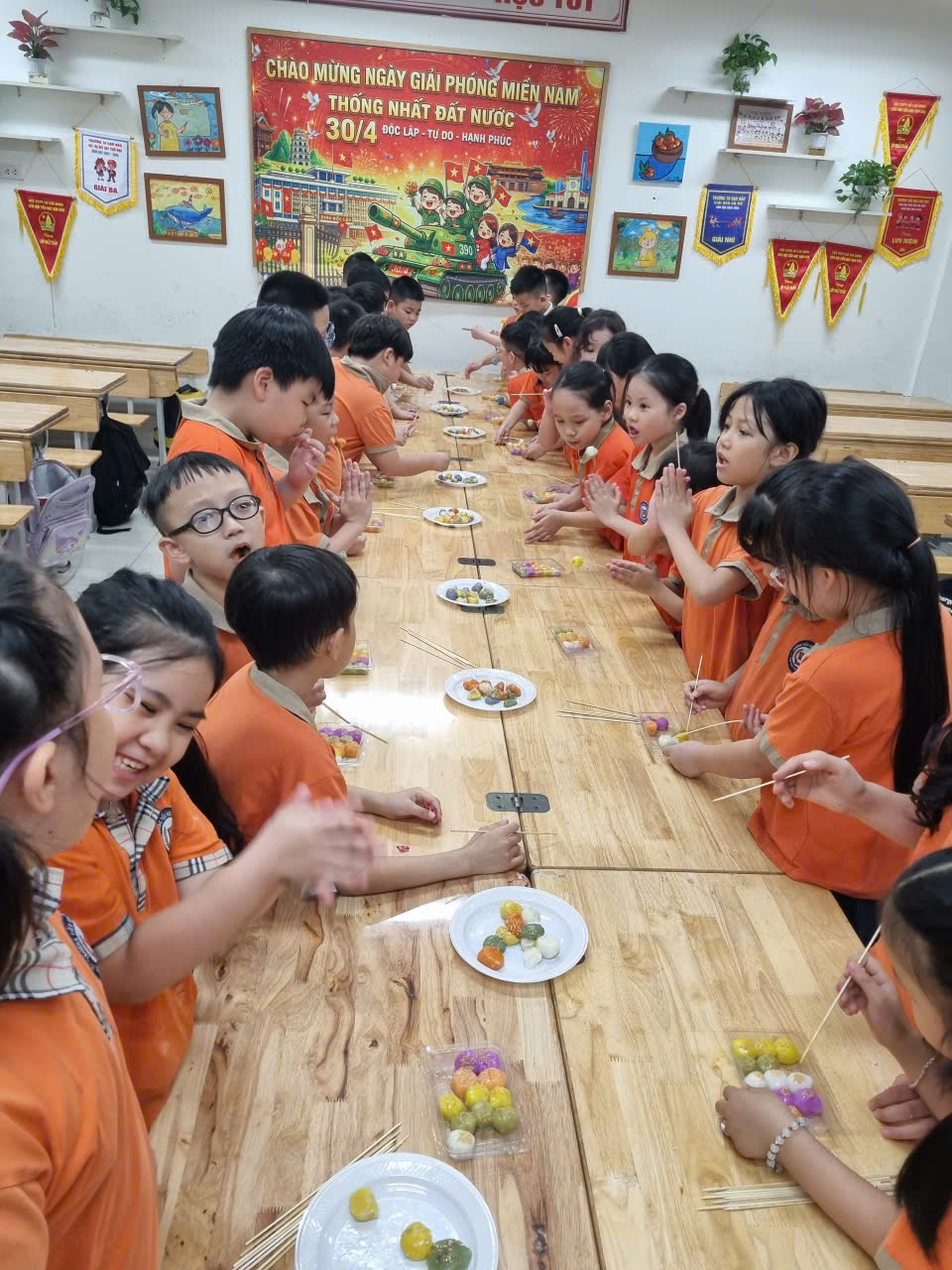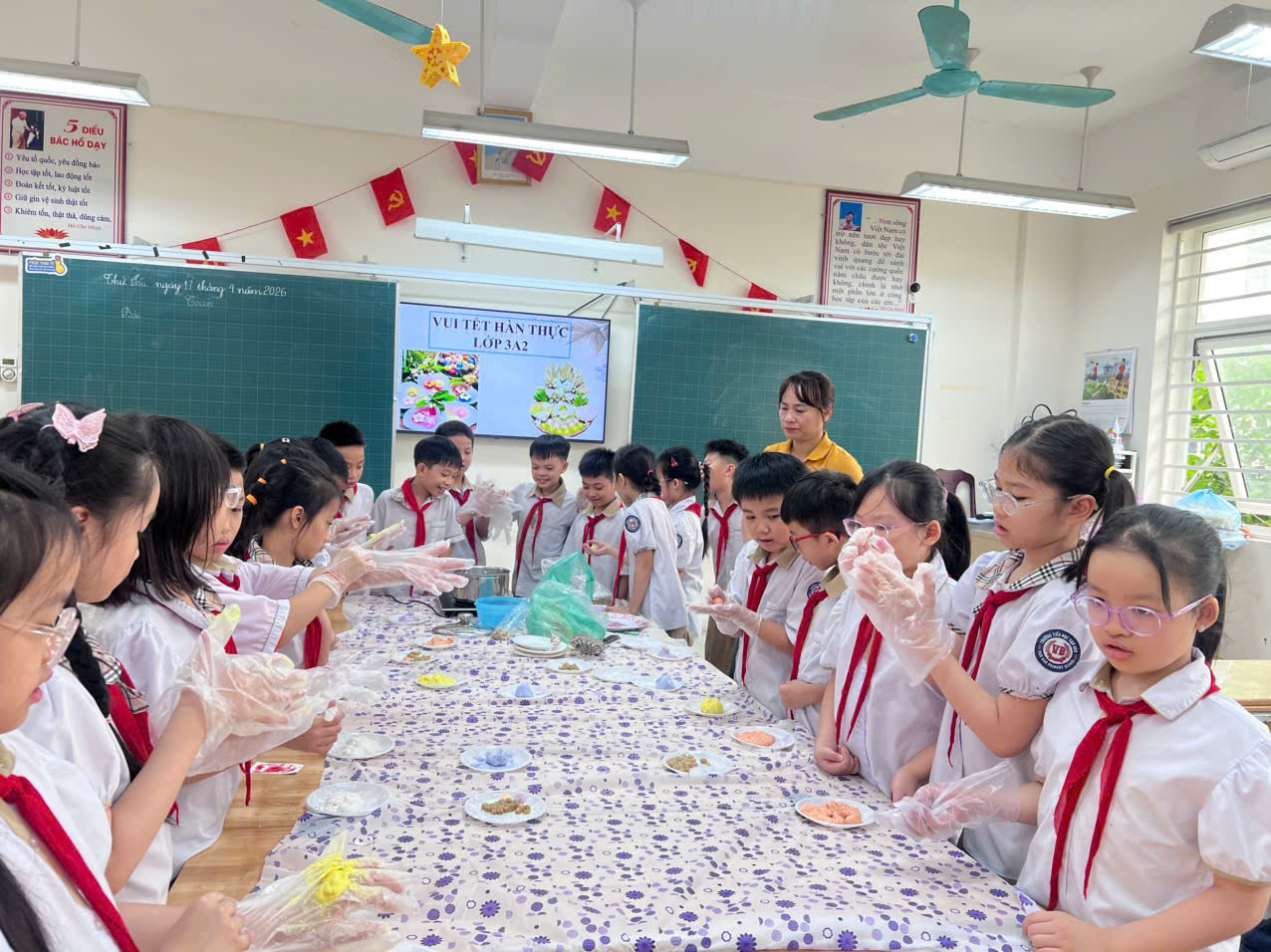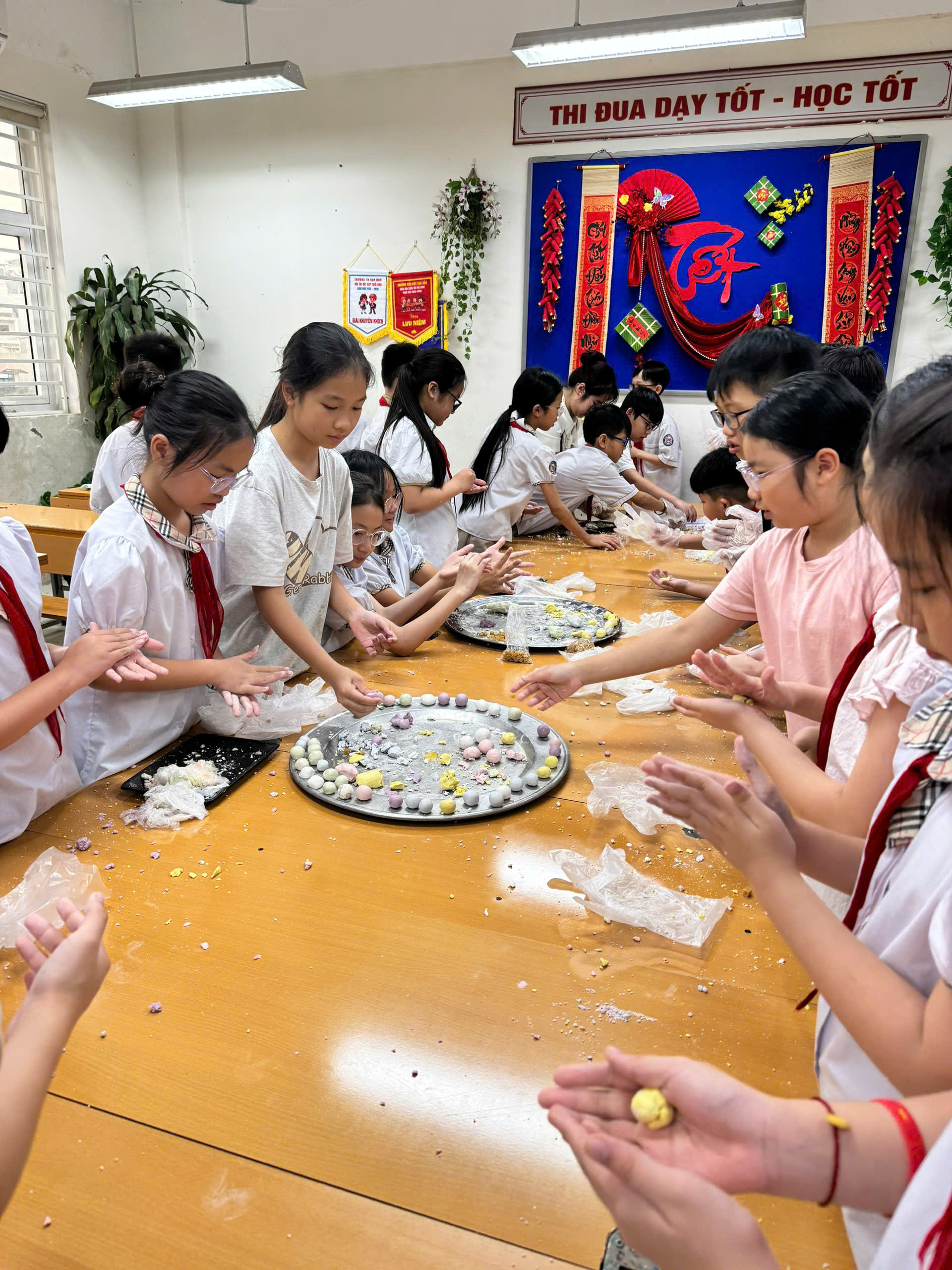Dưới sự hướng dẫn tận tình của thầy cô, các em không chỉ học cách nhào bột, nặn bánh mà còn hiểu thêm về ý nghĩa văn hóa của ngày Tết Hàn Thực – nét đẹp trong truyền thống dân tộc Việt Nam.