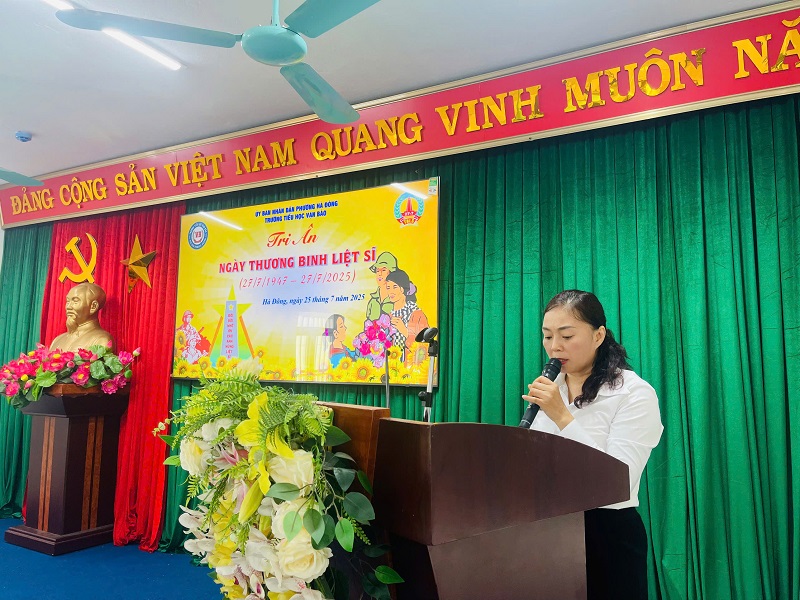 Nhân dịp kỷ niệm 78 năm Ngày Thương binh liệt sỹ 27/7. Sáng ngày 25/7/2025, tập thể cán bộ, giáo viên, nhân viên trường Tiểu học Vạn Bảo đã tổ chức “Dâng hương tưởng nhớ các anh hùng liệt sĩ” tại nghĩa trang liệt sĩ phường Hà Đông. Sáng cùng ngày, cán bộ, giáo viên, nhân viên “Dâng hương nhà lưu niệm Bác Hồ” phường Hà Đông và tổ chức thăm hỏi, tri ân, tặng quà 8 gia đình có người thân là liệt sĩ, thương binh, bệnh binh, bị nhiễm chất độc màu da cam. Hoạt động có ý nghĩa giáo dục cán bộ, giáo viên, nhân viên về truyền thống đấu tranh cách mạng, lòng yêu quê hương, đất nước, từ đó ra sức rèn luyện học tập, góp phần nỗ lực hoàn thành xuất sắc nhiệm vụ của người lái đò. Tập thể cán bộ, giáo viên, nhân viên và học sinh trường tiểu học Vạn Bảo đời đời nhớ ơn các anh hùng liệt sỹ.