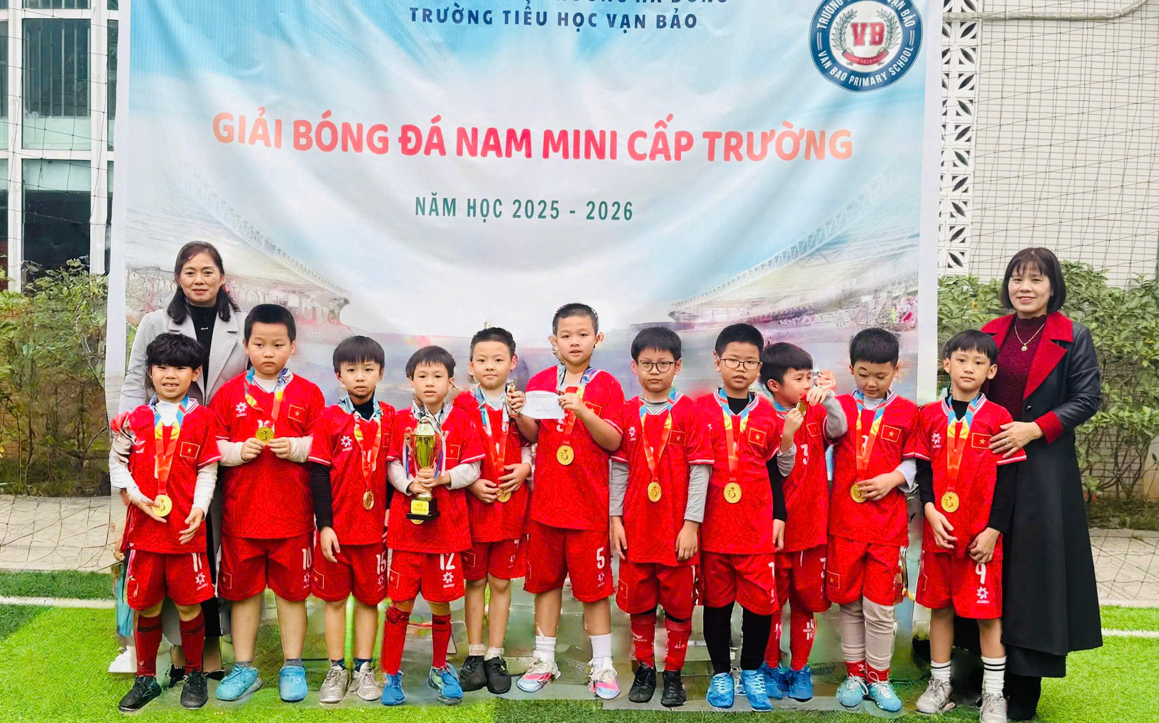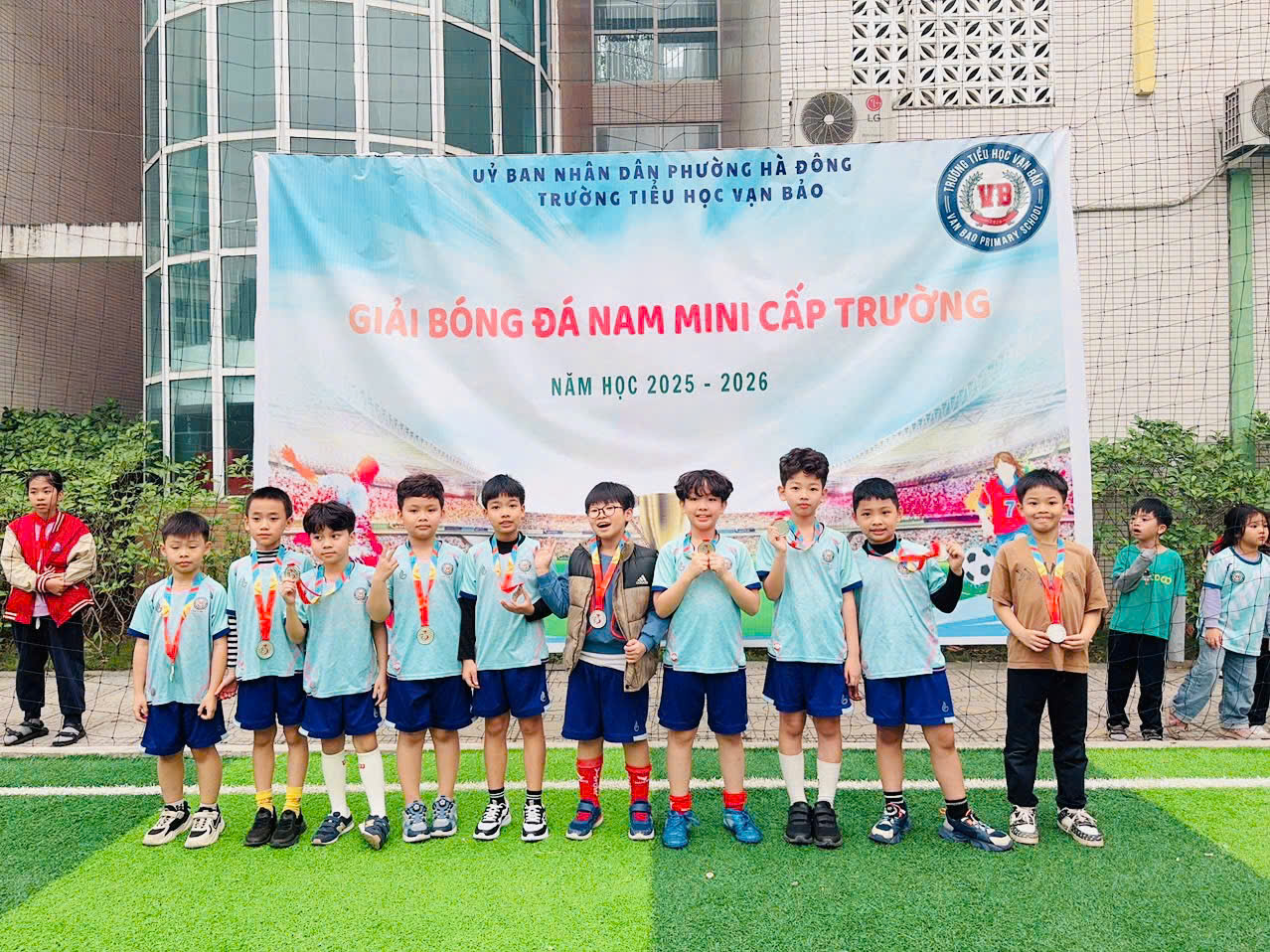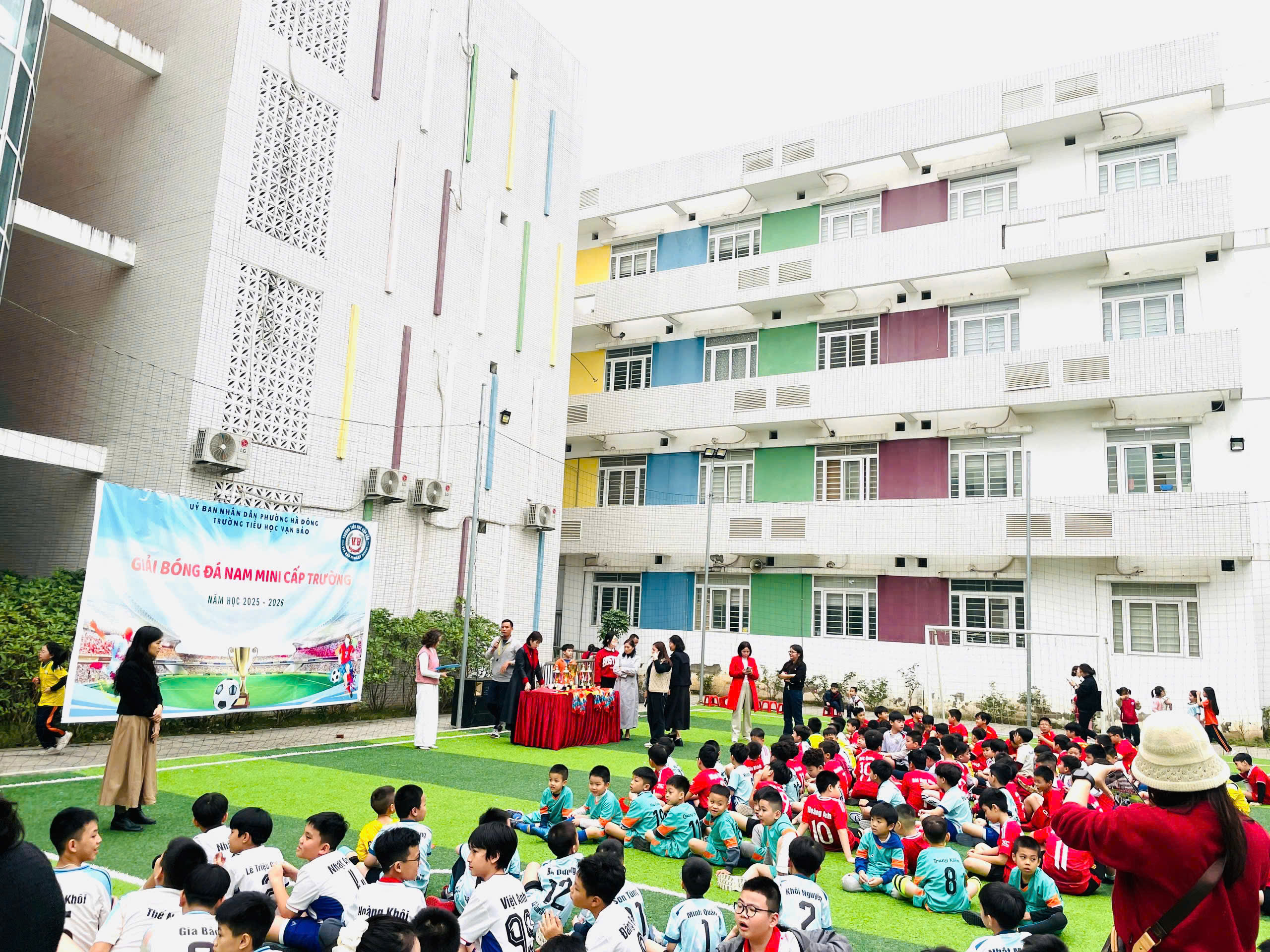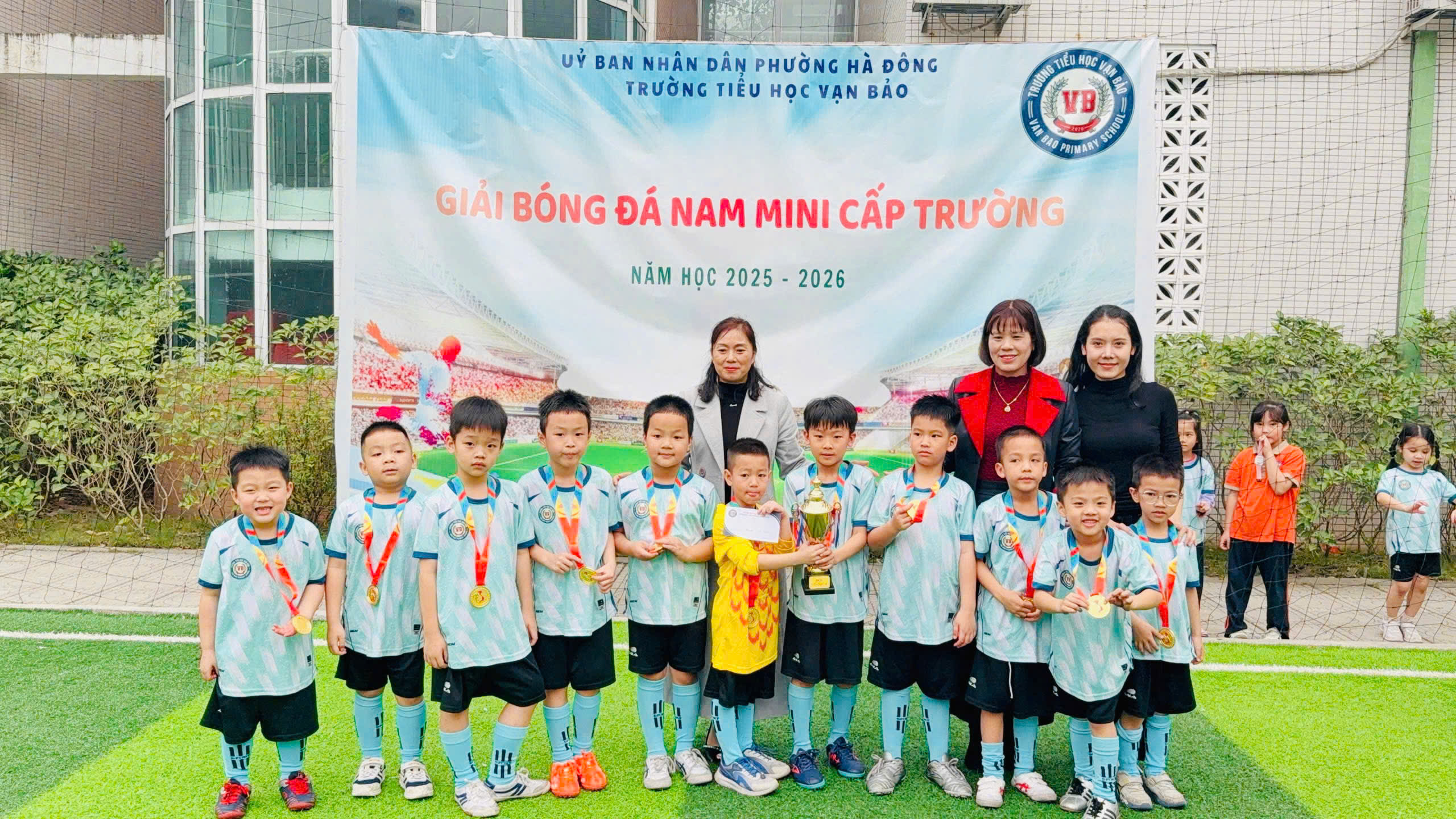 Hòa chung không khí sôi nổi của các hoạt động thể thao học đường, Trường Tiểu học Vạn Bảo đã tổ chức Giải bóng đá nam cấp trường. Giải đấu không chỉ là sân chơi rèn luyện sức khỏe – tinh thần đoàn kết – ý chí vượt khó, mà còn là nơi các cầu thủ nhí được thể hiện niềm đam mê, sự tự tin và tinh thần thi đấu hết mình ![]()