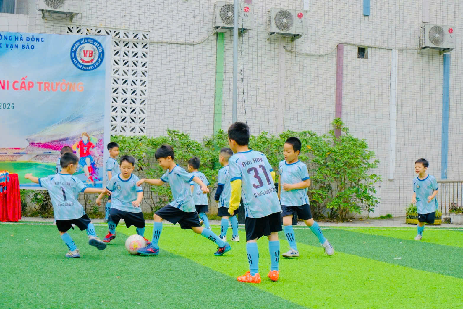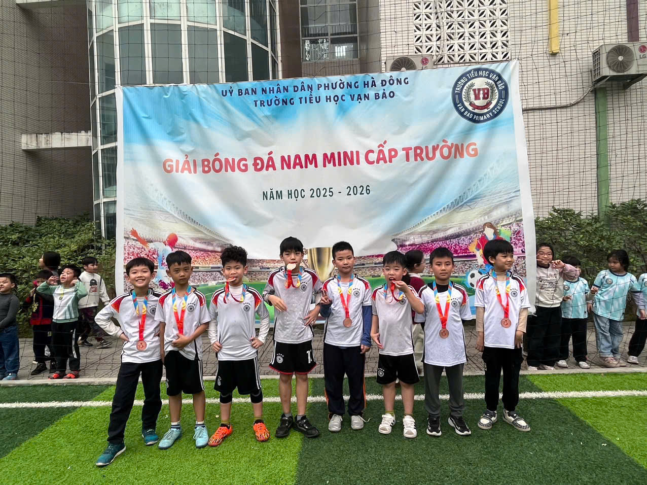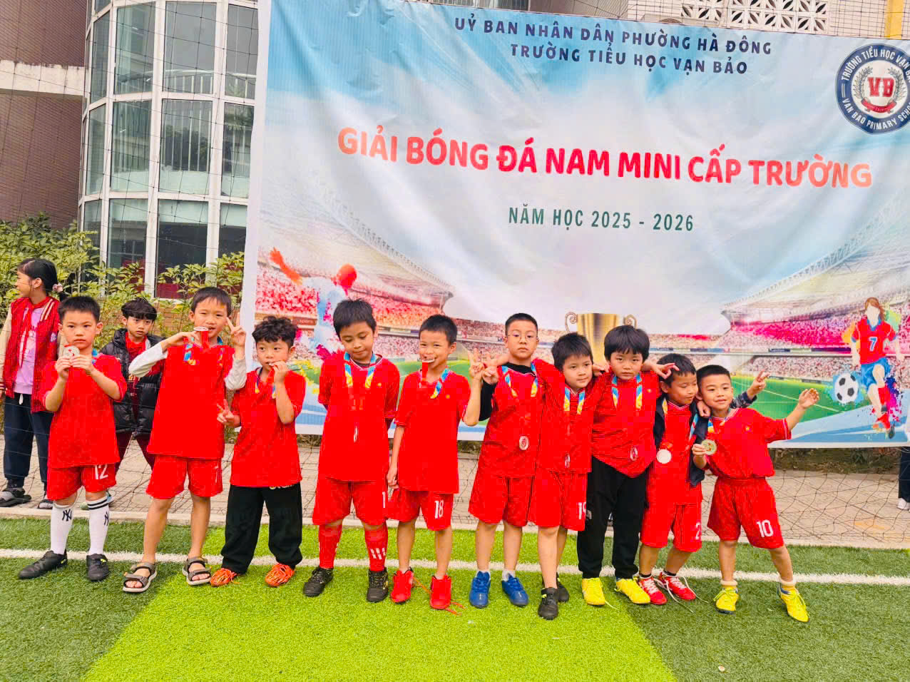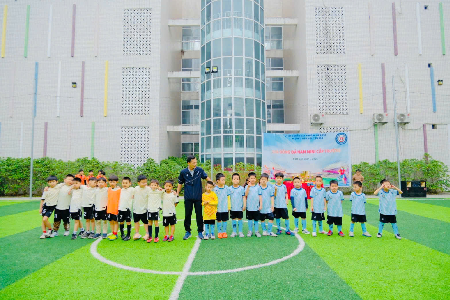 Hòa chung không khí sôi nổi của các hoạt động thể thao học đường, Trường Tiểu học Vạn Bảo đã tổ chức Giải bóng đá nam cấp trường. Giải đấu không chỉ là sân chơi rèn luyện sức khỏe – tinh thần đoàn kết – ý chí vượt khó, mà còn là nơi các cầu thủ nhí được thể hiện niềm đam mê, sự tự tin và tinh thần thi đấu hết mình ![]()