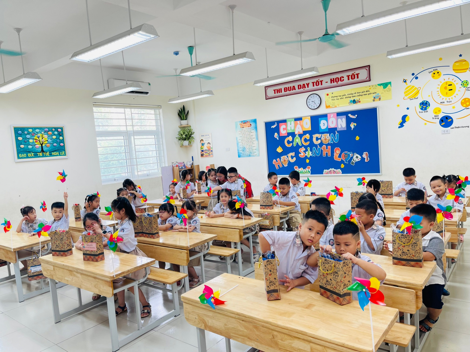 Trong không khí vui tươi củangày tựu trường, hôm nay trường Tiểu học Vạn Bảo phấn khởi chào đón hơn 200 thiên thần nhỏ đủ điều kiện bước vào học lớp 1 năm học 2023 – 2024. Ngay từ sáng sớm, tất cả các thầy cô giáo đã có mặt tại trường cùng nhau hoàn tất các khâu cuối cùng để đón học sinh. Ngôi nhà chung Vạn Bảo đã được trang hoàng, sắp xếp cẩn thận từ phòng học đến mọi cảnh quan trong khuôn viên nhà trường. Dưới đây là một số hình ảnh của cô trò trong ngày đầu tiên tới trường.