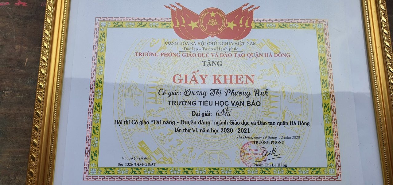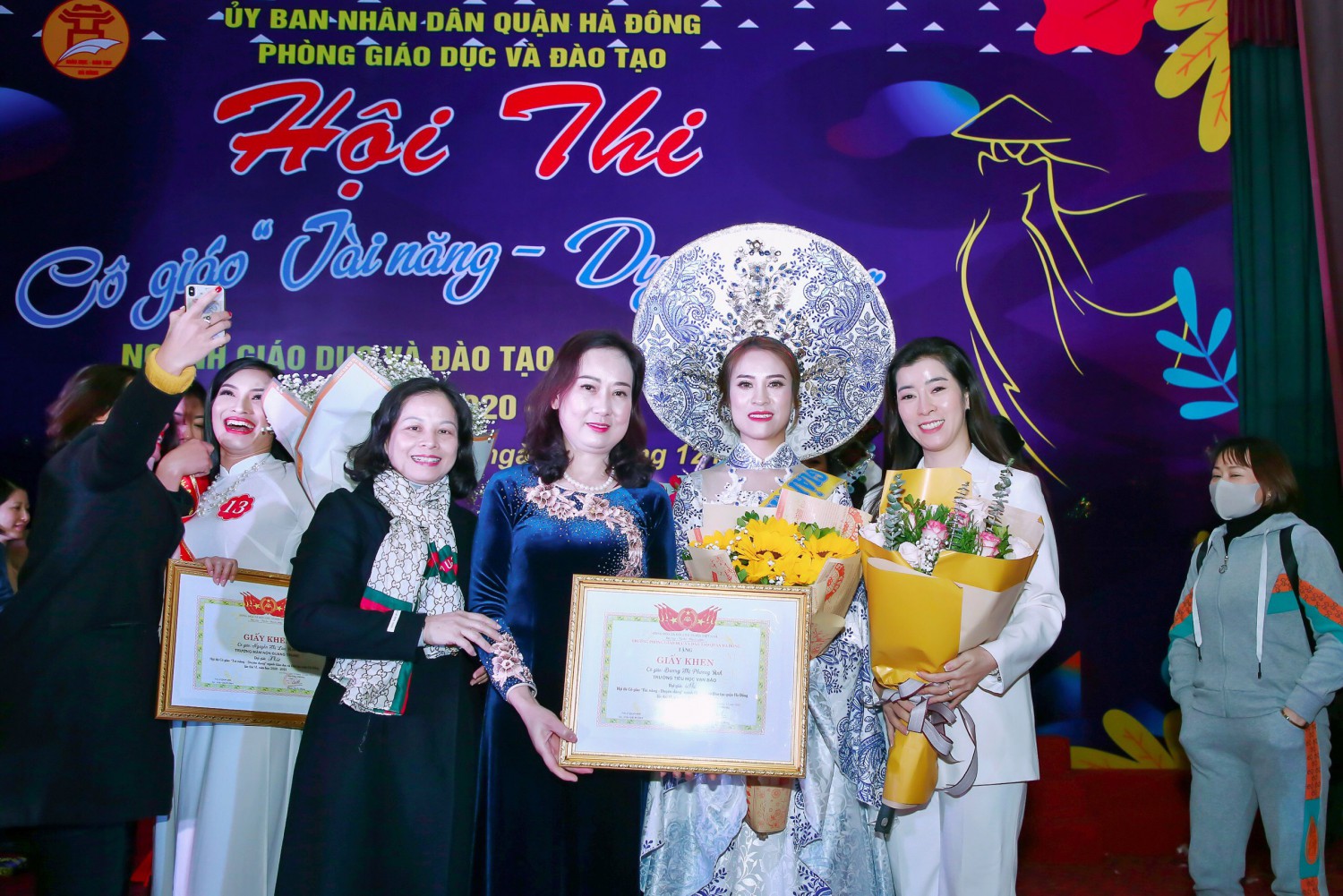Sáng ngày 19/12/2020 tại nhà Văn hóa quận Hà Đông đã diễn ra cuộc thi “Cô giáo tài năng duyên dáng” ngành giáo dục và đào tạo quận Hà Đông năm học 2020 – 2021. Đến với hội thi các cô giáo sẽ trải qua 4 phần thi: Trình diễn áo dài; Phần thi tài năng; Trang phục dạ hội và Phần thi ứng xử. Rất tuyệt vời khi cô giáo Dương Thị Phương Anh là giáo viên của nhà trường đã đạt giải Nhì trong hội thi.