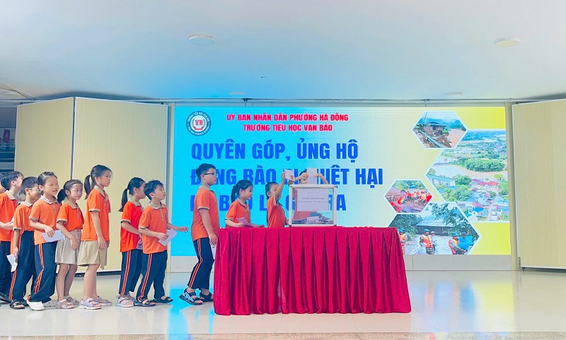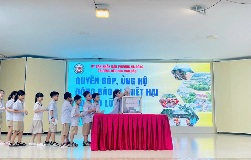 Ngày 10 tháng 10 năm 2025, tập thể cán bộ, giáo viên, nhân viên, phụ huynh và học sinh trường Tiểu học Vạn Bảo đã cùng nhau quyên góp ủng hộ đồng bào đang gặp khó khăn do ảnh hưởng của thiên tai, lũ lụt. Đây là một hoạt động đầy ý nghĩa, thể hiện tinh thần “lá lành đùm lá rách” – truyền thống quý báu từ ngàn đời của dân tộc Việt Nam.