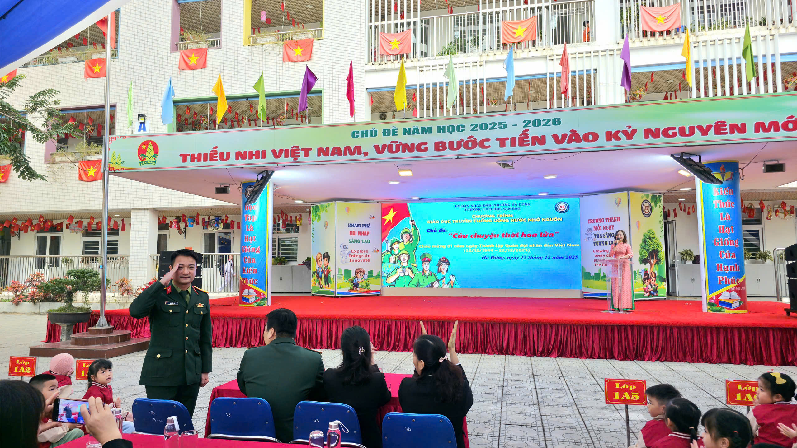 Hôm nay, ngày 15/12/2025 trong không khí trang trọng và thiêng liêng ấy, Trường Tiểu học Vạn Bảo long trọng tổ chức Chương trình Giáo dục truyền thống Uống nước nhớ nguồn với chủ đề “Câu chuyện thời hoa lửa” chào mừng kỷ niệm 81 năm Ngày thành lập Quân đội Nhân dân Việt Nam (22/12/1944 – 22/12/2025) và 36 năm Ngày hội Quốc phòng toàn dân (1989 – 2025). Đây là dịp để chúng ta kính cẩn tri ân những thế hệ cha anh đi trước, đồng thời bồi đắp cho thế hệ học sinh hôm nay niềm tự hào, ý chí và trách nhiệm tiếp bước truyền thống dựng xây và bảo vệ Tổ quốc.