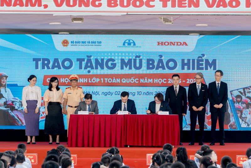 Hưởng ứng năm An toàn giao thông 2025 của Ủy ban ATGT Quốc gia với chủ đề “Hành trình An toàn, Kiến tạo tương lai”, Công ty Honda Việt Nam phối hợp cùng Ủy ban An toàn giao thông Quốc gia và Bộ Giáo dục & Đào tạo tổ chức Lễ phát động Chương trình Trao tặng mũ bảo hiểm cho học sinh lớp Một trên toàn quốc năm học 2025 – 2026 tại trường Tiểu học Vạn Bảo, Thành phố Hà Nội.