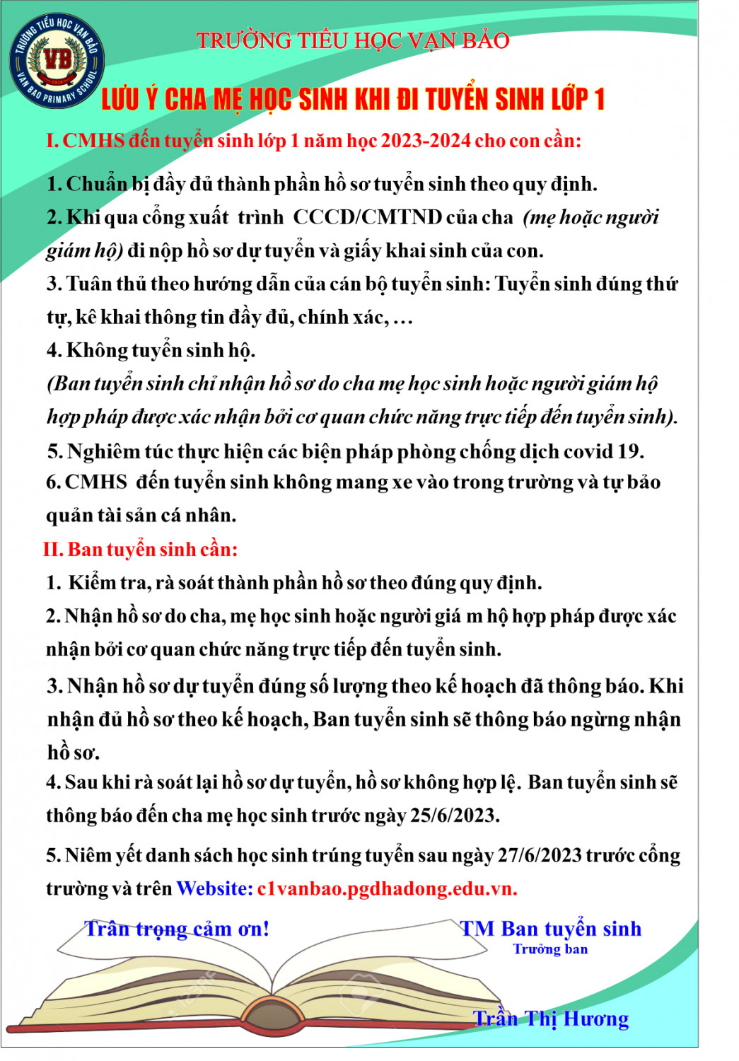 LƯU Ý CHA MẸ HỌC SINH KHI ĐI TUYỂN SINH LỚP 1 NĂM HỌC 2023 -2024