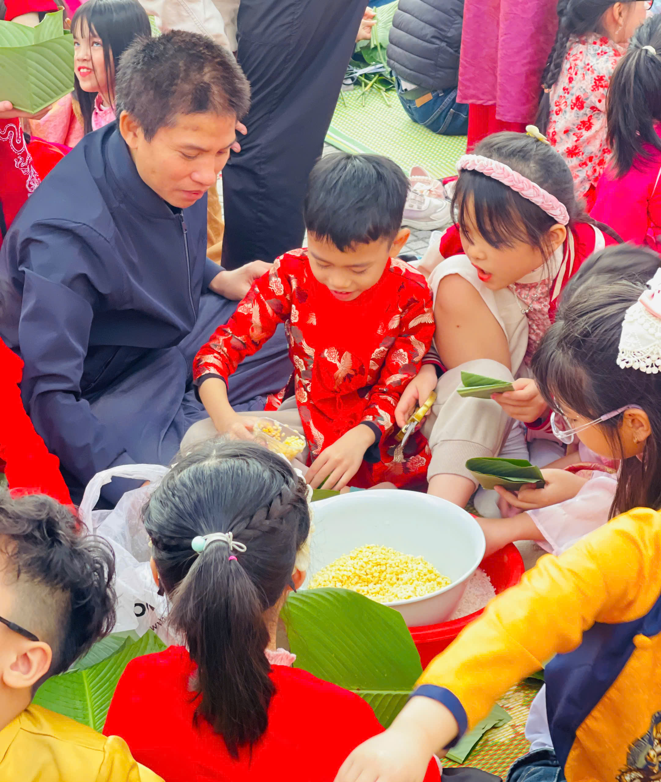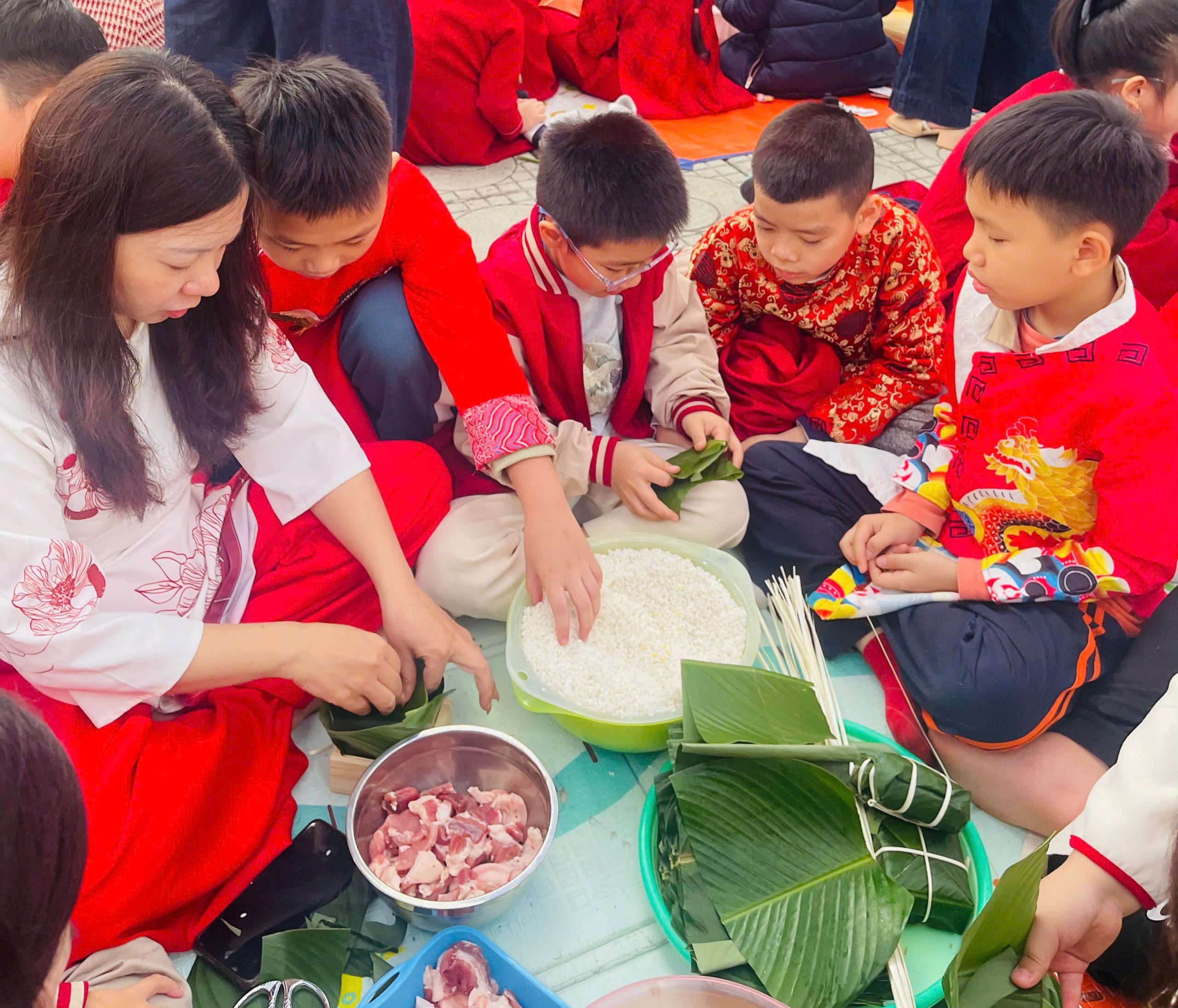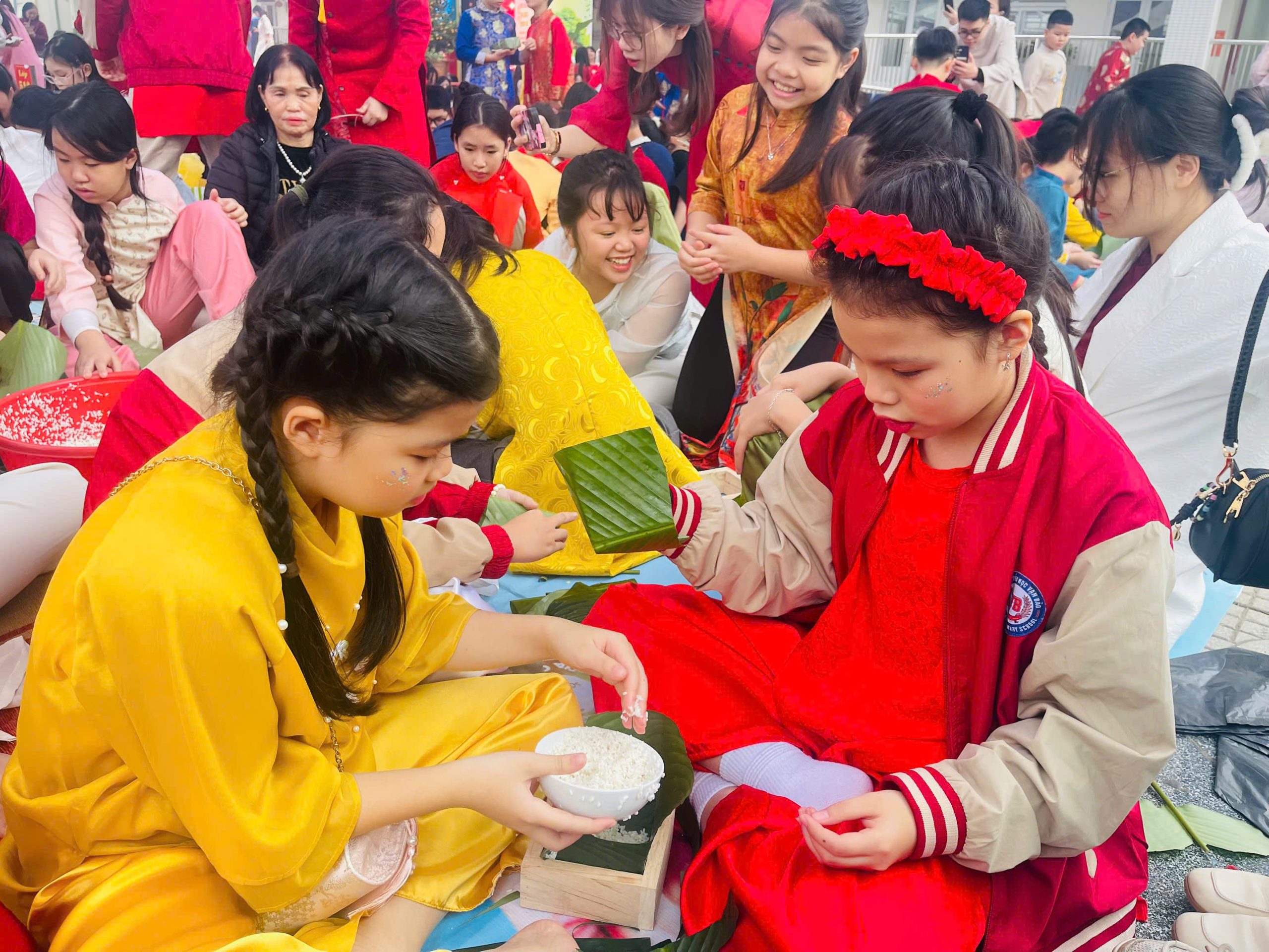 🌸Hòa trong không khí rộn ràng đón Tết cổ truyền của dân tộc, ngày 05/2/2026 Trường Tiểu học Vạn Bảo đã tổ chức Ngày hội bánh chưng – Gìn giữ hồn tết Việt với thật nhiều niềm vui và tiếng cười. Tại sân trường, những chiếc lá dong xanh mướt, gạo nếp trắng ngần, đỗ xanh vàng óng…đã được thầy cô, phụ huynh và các em học sinh cùng nhau chuẩn bị và gói nên những chiếc bánh chưng đong đầy yêu thương.