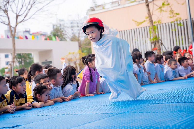 - Trò chơi tập thể: Đội mũ bảo hiểm đi bao bố – Khối 1; Chuyền bóng hơi – Khối 3; Bước chân Phù Đổng – Khối 4, 5.