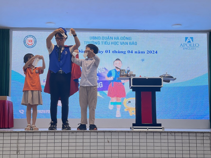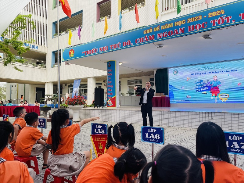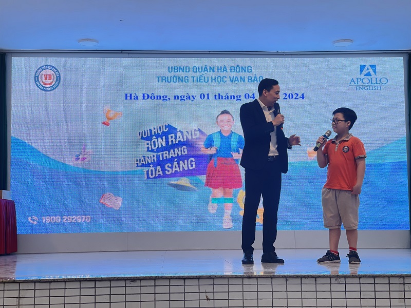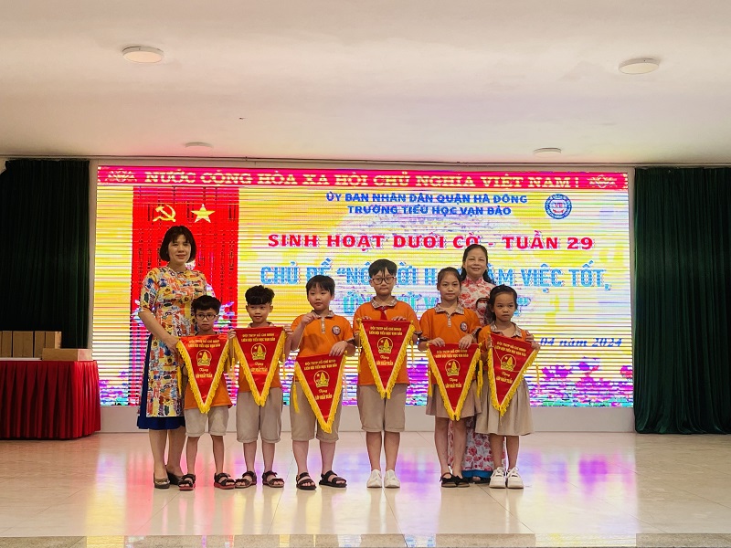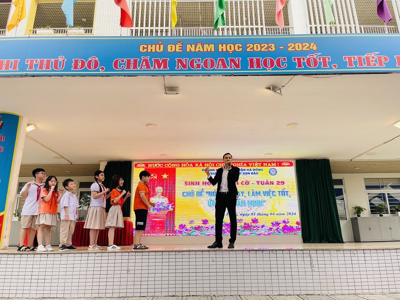 Sáng thứ Hai ngày 01/04/2024, trường Tiểu học Vạn Bảo đã long trọng tổ chức lễ sinh hoạt dưới cờ tuần 29. Buổi lễ có sự tham gia đầy đủ của Ban Giám Hiệu, các thầy cô giáo và các em học sinh, ngoài ra còn có sự góp mặt của các thầy cô giáo đến từ trung tâm Anh ngữ Apollo. Trong buổi lễ các con được tham gia chào cờ đầu tuần, hát quốc ca, đội ca, được nghe cô Mai Thị Chiên – Tổng phụ trách Đội nhận xét, đánh giá các hoạt động trong tuần, đánh giá về việc thực hiện các nội quy, quy định của trường. Qua đó biểu dương các tập thể, tấm gương sáng về tinh thần học tập, ý thức trong các hoạt động của nhà trường; nhắc nhở, uốn nắn những học sinh thực hiện chưa tốt các quy định, nề nếp, tác phong. Ngoài ra, tại buổi lễ các con được tham gia chương trình rèn luyện kỹ năng tự bảo vệ bản thân do trường Tiểu học Vạn Bảo kết hợp với trung tâm Anh ngữ Apollo tổ chức.