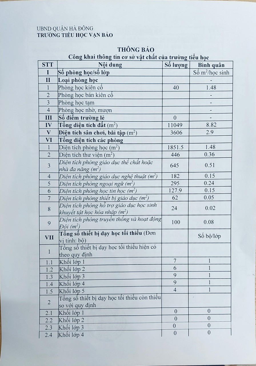 Thông báo công khai cơ sở vật chất