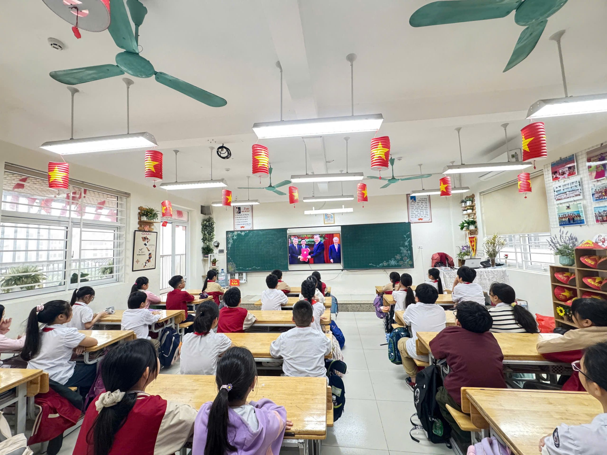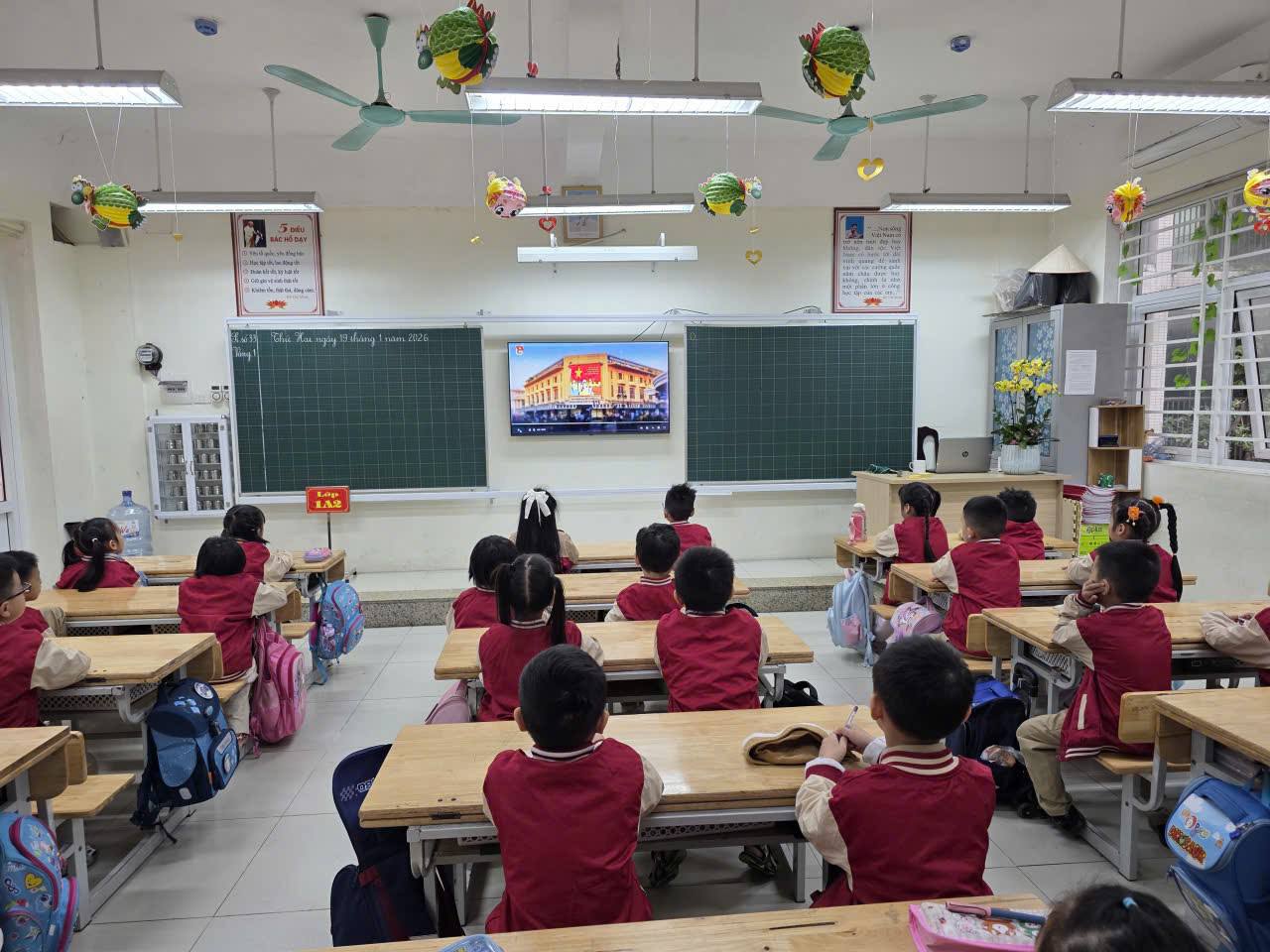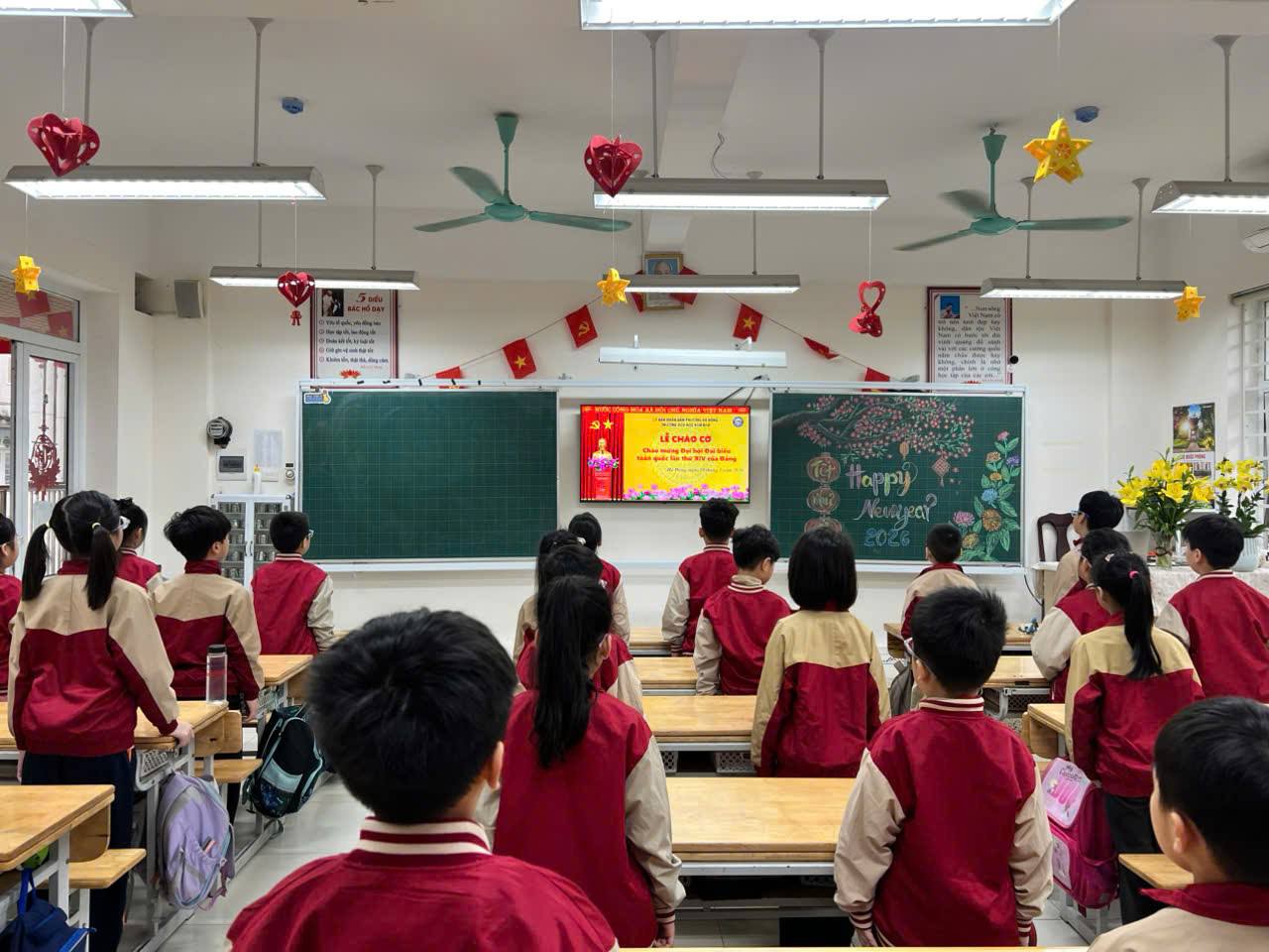 Các em học sinh đã được xem phim tư liệu về Đảng và Đại hội XIV, đồng thời giới thiệu và tập luyện Thử thách vũ điệu “Hiệu triệu trái tim”, góp phần giáo dục truyền thống, bồi đắp lý tưởng và khơi dậy tinh thần yêu nước. Hoạt động ý nghĩa này thể hiện niềm tin son sắt của thầy và trò nhà trường đối với Đảng, quyết tâm học tập – rèn luyện tốt, xứng đáng là những mầm non của đất nước trong kỷ nguyên mới. Một lần nữa, xin kính chúc Đại hội Đại biểu toàn quốc lần thứ XIV của Đảng Cộng sản Việt Nam thành công tốt đẹp.
