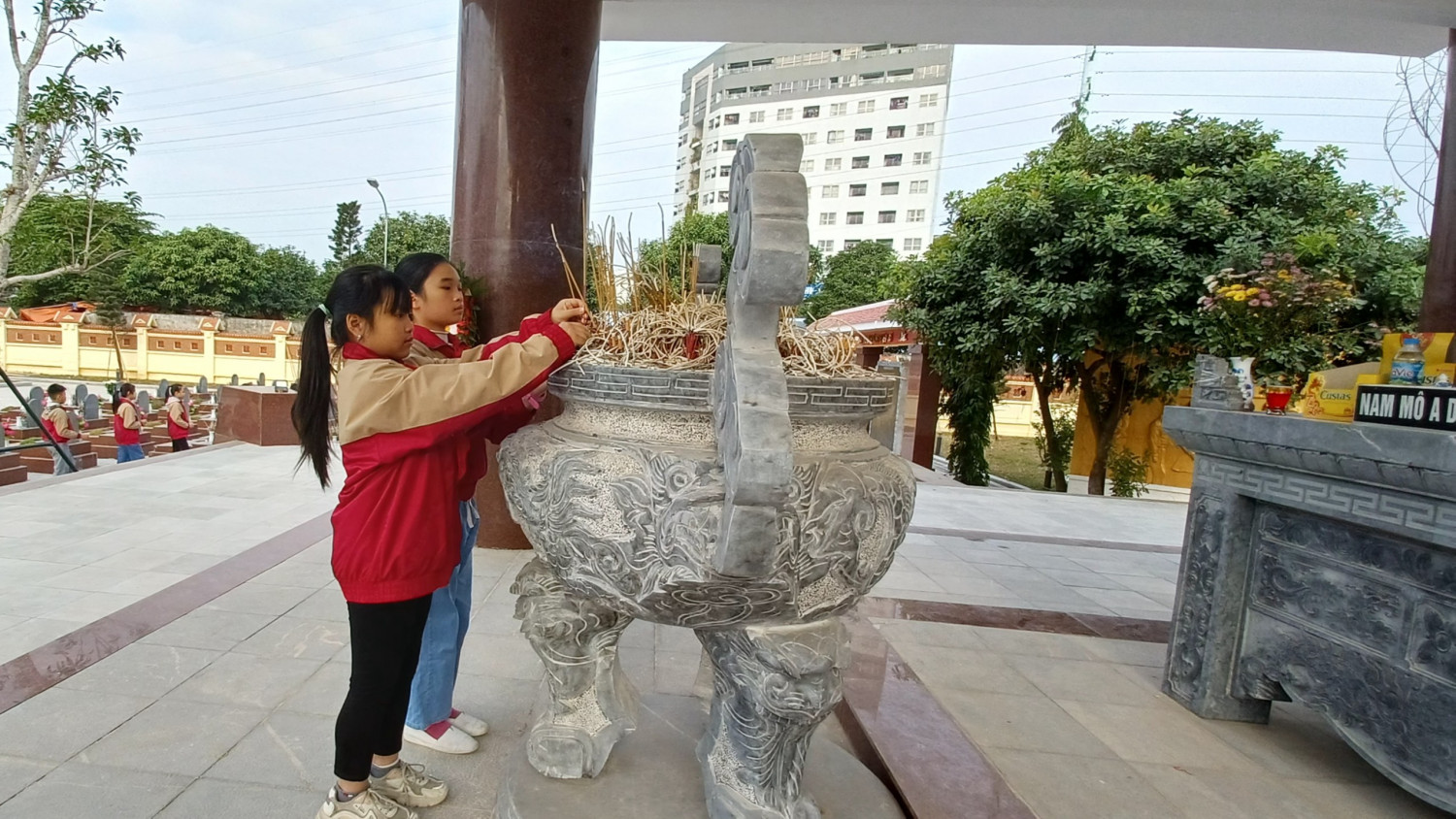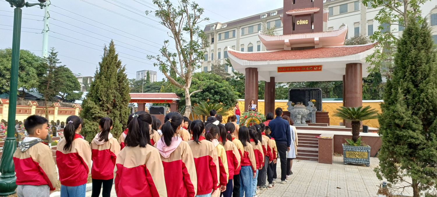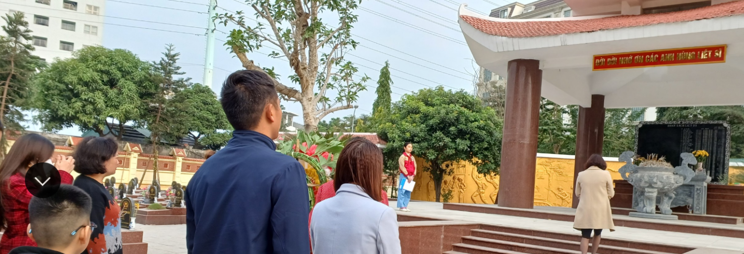 Ngày 21/12, cô Nguyễn Thị Hương – Phó Hiệu trưởng – đại diện cho Ban Giám Hiệu nhà trường cùng một số thầy cô giáo và các em học sinh đến thắp hương tưởng niệm các anh hùng liệt sĩ đã anh dũng hi sinh bảo vệ nền độc lập tổ quốc tại nghĩa trang liệt sĩ phường Vạn Phúc.